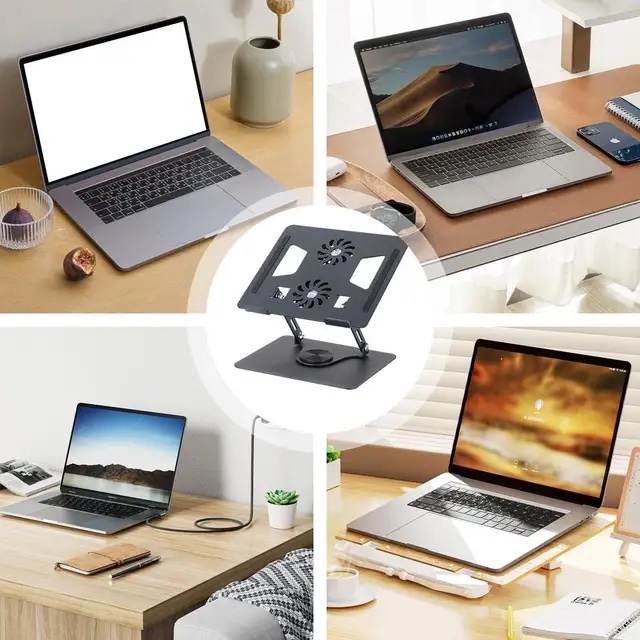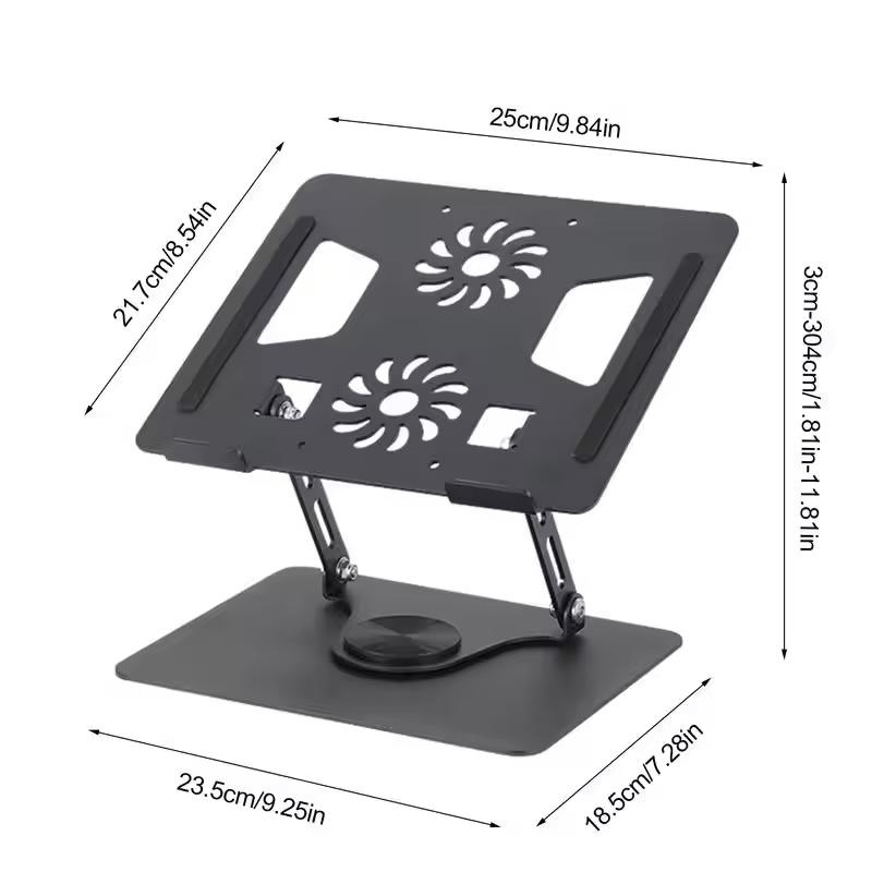0 Degree Rotating Aluminum Alloy Laptop Stand Cooling 360!Tablet Holder with Foldable Fan Radiator Anti-Slip Lifting