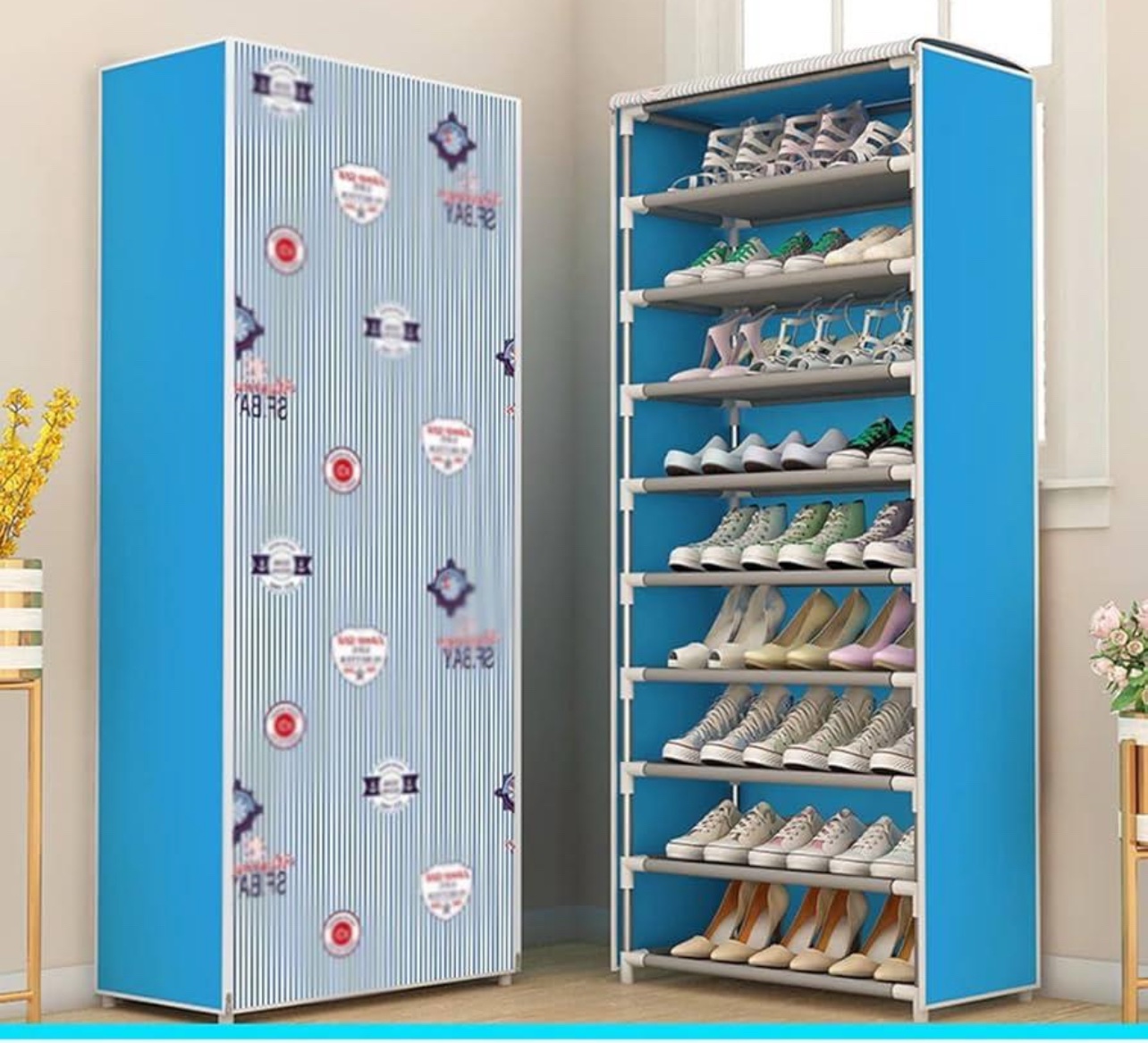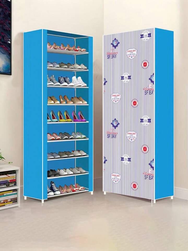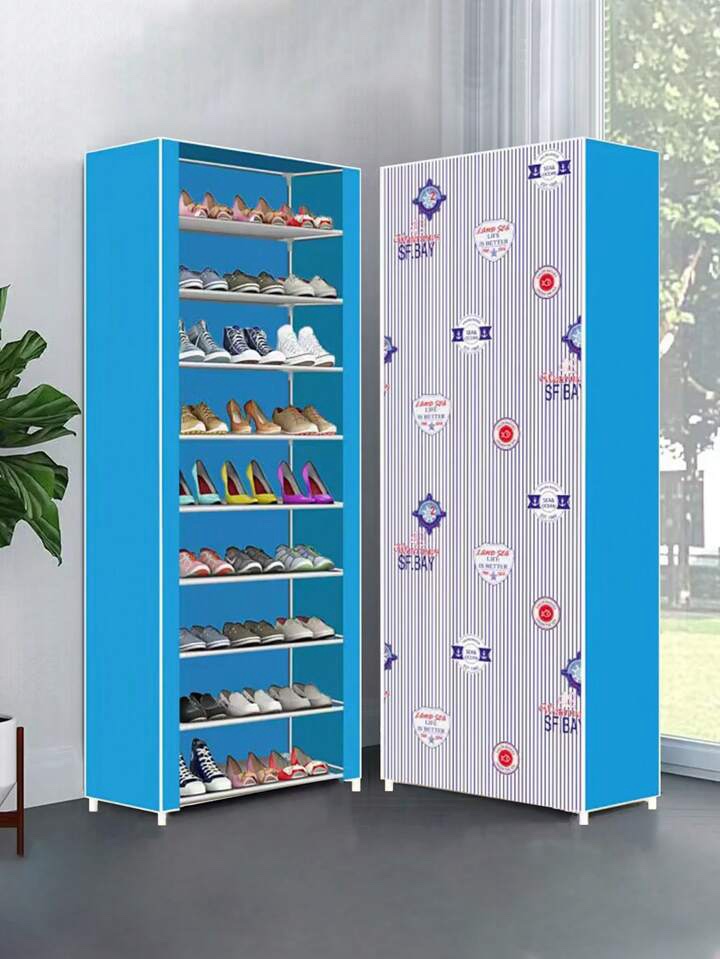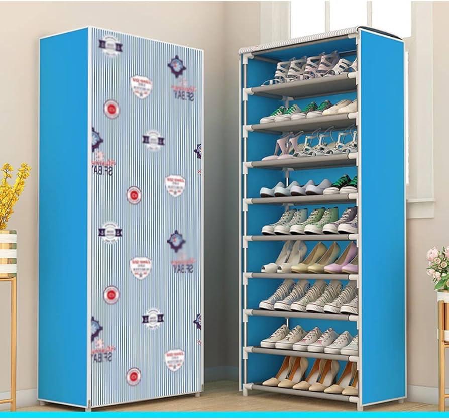 Home » 10 Layers Blue Large Size Dustproof Oxford Cloth Roll-Up Door Shoe Rack Organizer With Patterns For Indoor Use At Entryway lc