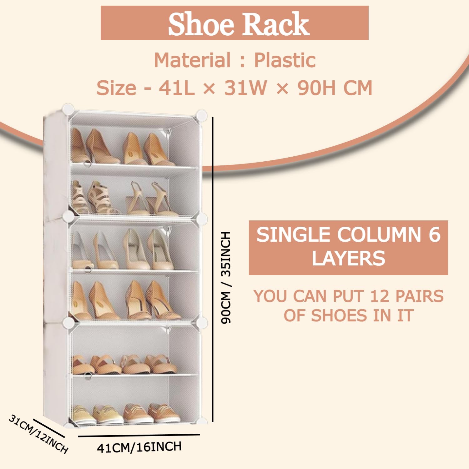 Home » 12 Pair – 6 Layer Shoe Rack for Home Plastic Portable Shoe Rack Organizer with Dustproof Door for Heels, slippers, Boots, Multi-Purpose Shelf Shoe Storage Cabinet Stand with Hooks