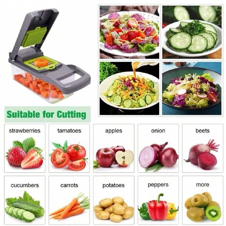 Home » 1pc Vegetable Chopper, Multifunctional Fruit Slicer, Handle Food Grater, Vegetable Slicer, Cutter With Container, Onion Mincer Chopper With Multiple Interchangeable Blades, Household Potato Shredder, Kitchen Stuff, Kitchen GadgetsDic