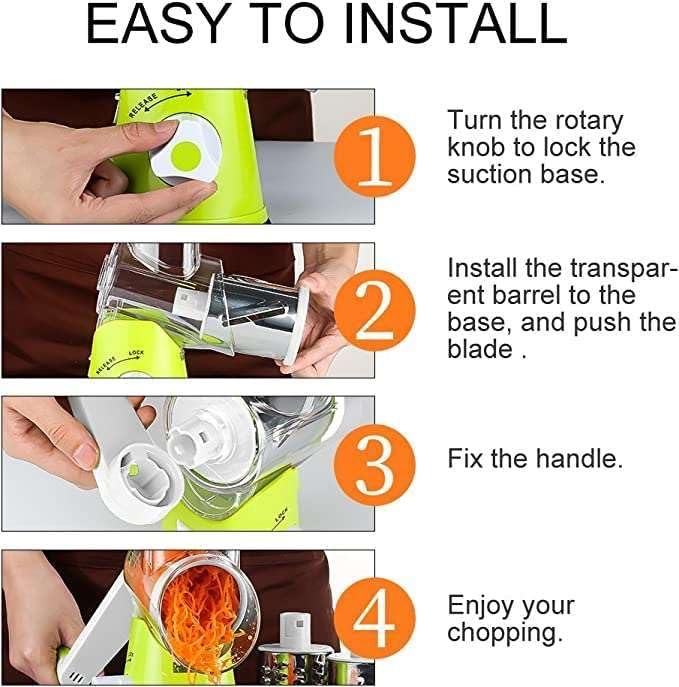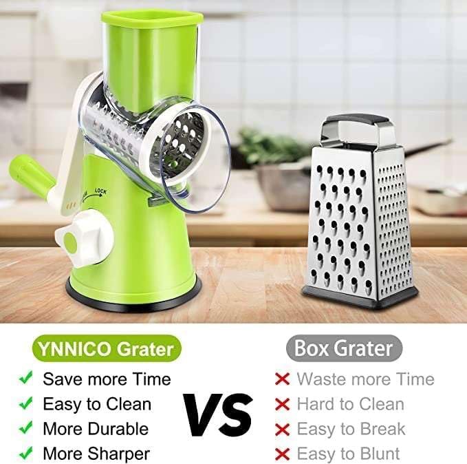 Home » 3 in 1 Rotary Cheese Grater, Kitchen Vegetable Slicer with 3 Interchangeable Blades, Rotary Grater Slicer For Fruit, Vegetables, Nuts (Green)