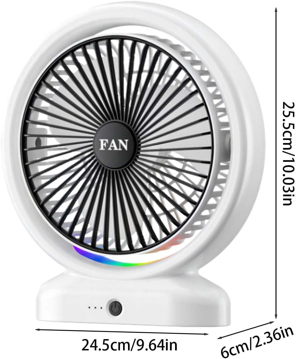 3 Speeds Mini Desktop Fan, Rechargeable Battery Powered Fan with Colorful LED lights, Portable USB Quiet Personals Fan, Suitable for Home Office Travel Camping Outdoor Indoor, Black Ro