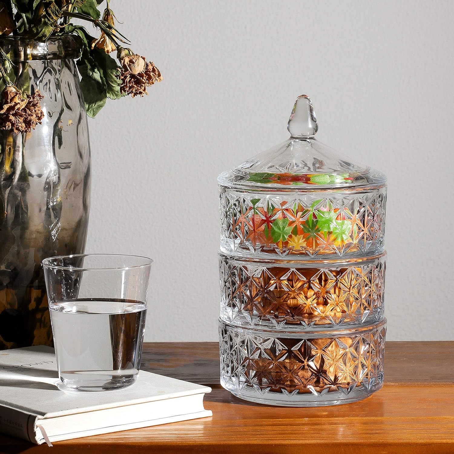 3 Tier/Level Decorative Stackable Pressed Pattern Clear Glass Container/Canister/Organizer/Apothecary Jar Set with Lid – Nice for Cookie/Candy/Snack Display or Kitchen/Bathroom Decoration Dc