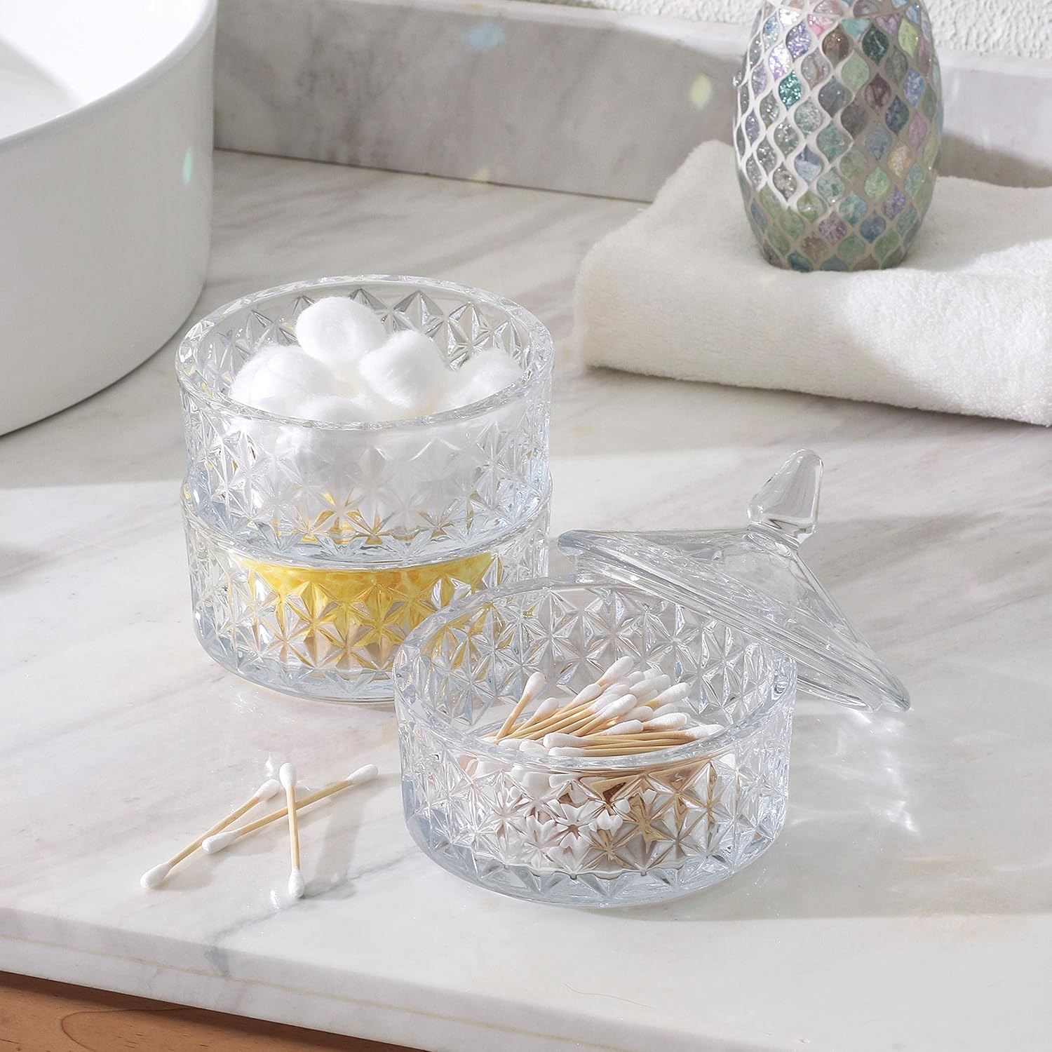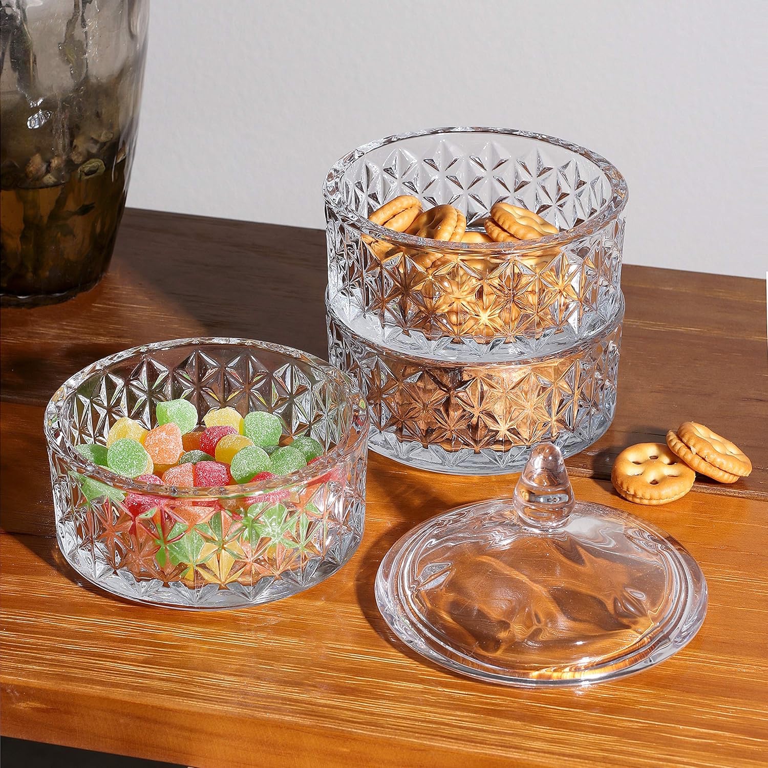 Home » 3 Tier/Level Decorative Stackable Pressed Pattern Clear Glass Container/Canister/Organizer/Apothecary Jar Set with Lid – Nice for Cookie/Candy/Snack Display or Kitchen/Bathroom Decoration Dc