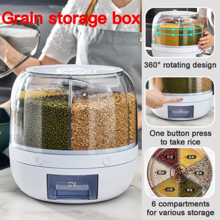 360° Rotate Whole Grain Storage Container Food Dispenser 6 In 1 6-Grid Rice Moistureproof Storage Container Box Kitchen Supplies