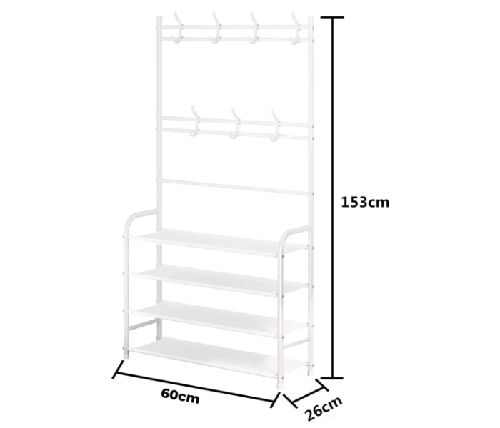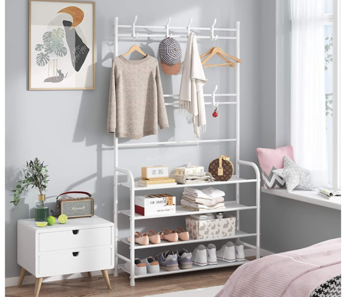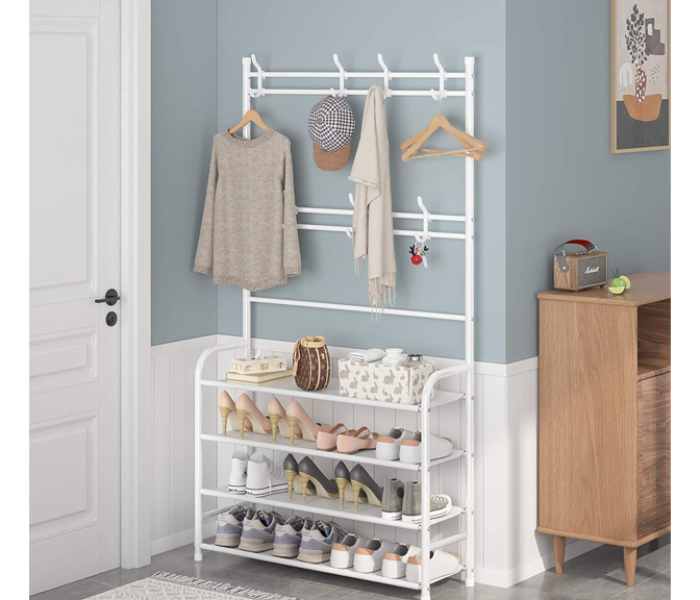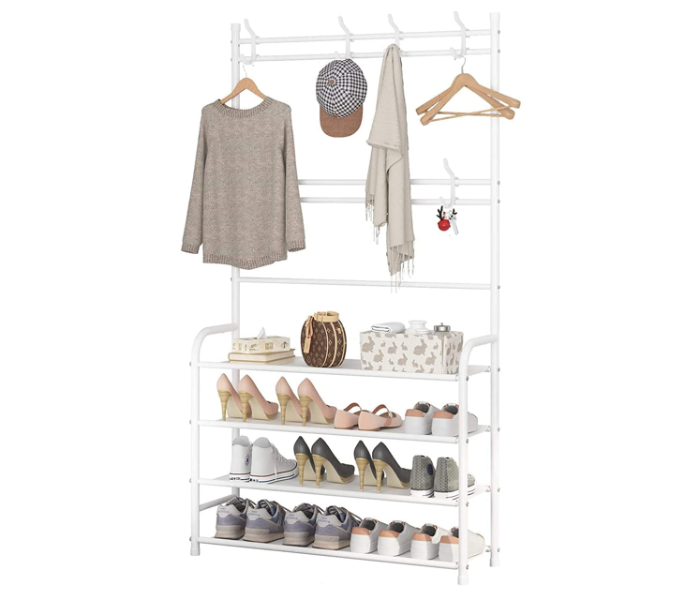 Home   »   4-Tier Shoe Bench and 8 Hooks Multifunctional Shoe and Hat Rack Storage Shelf – White Ro