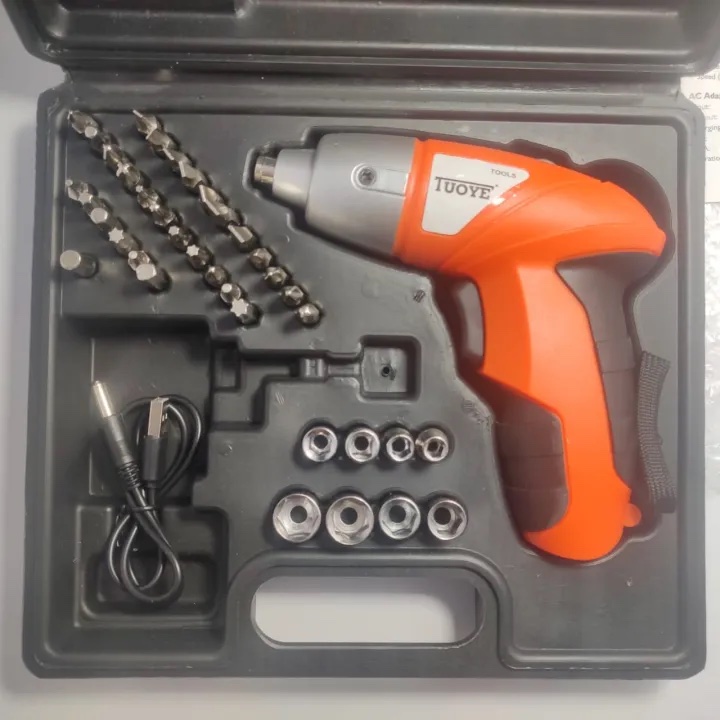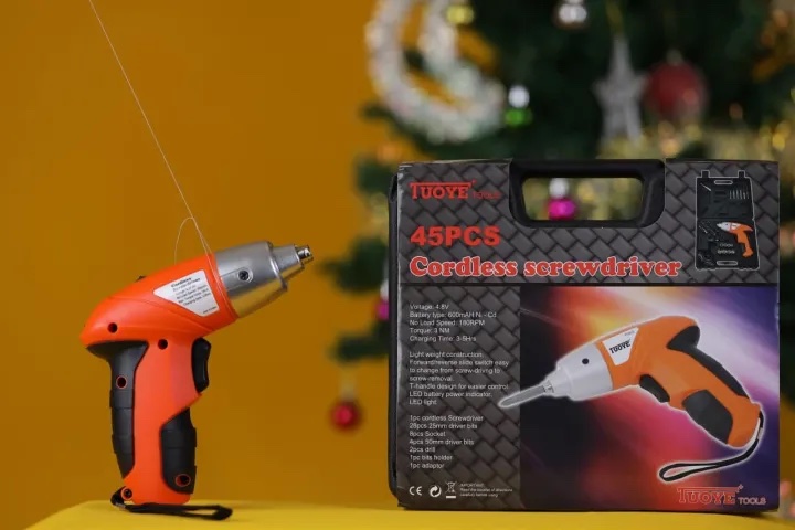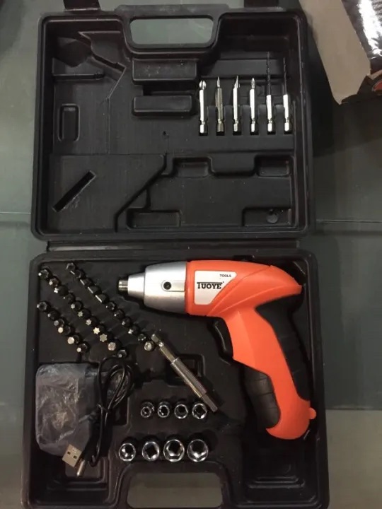 Home   »   45Pcs TUOYE Full Tool Kit with Electric Screwdriver, 4.2V Cordless Drill with USB Charging Lithium Rechargeable Battery Includes