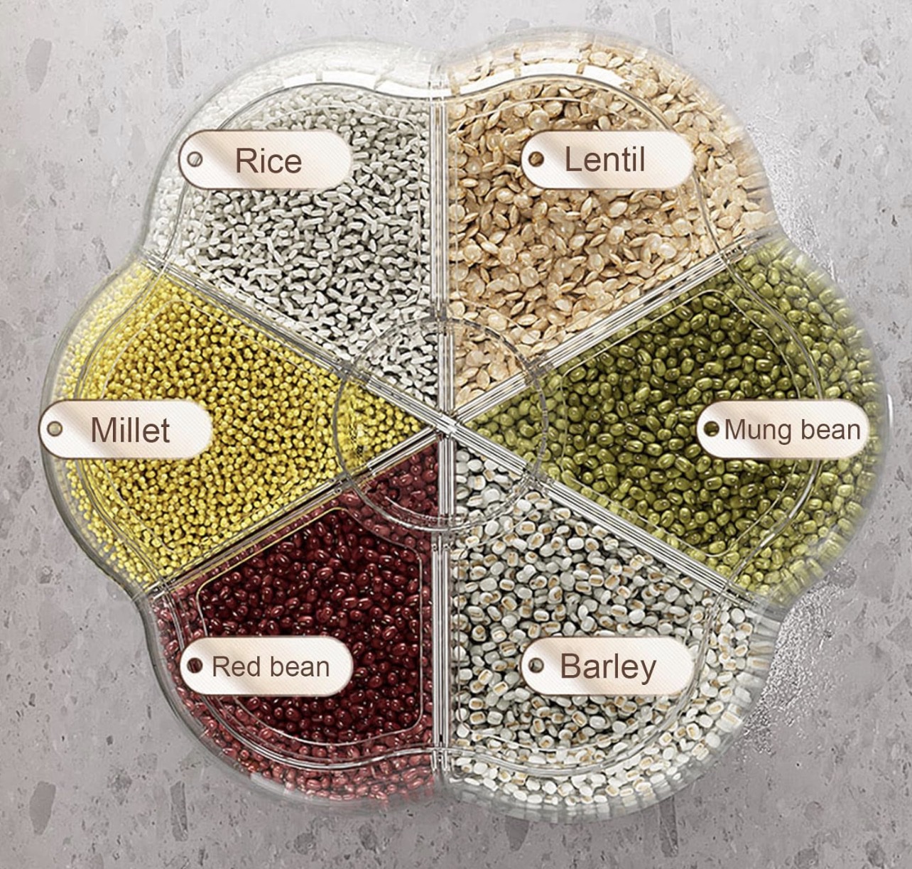 Home » 6 Grid Rotating 10kg Rice & Cereal Dispenser Storage Organizer, One-click Rice Output