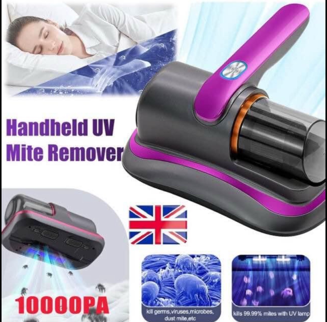 Deep cleaning. The cordless vacuum cleaner features a purple light that penetrates the mattress for a deeper clean.