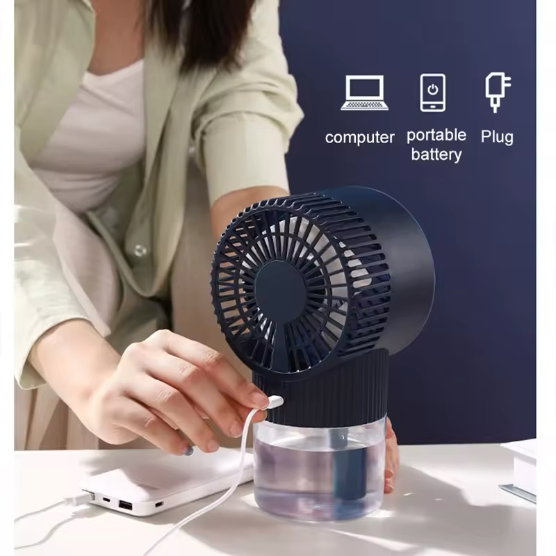 Air Conditioner Cooling Fan Portable Water Spray Humidifier Fan USB Rechargeable Air Circulating Fans With LED Light Air Cooler