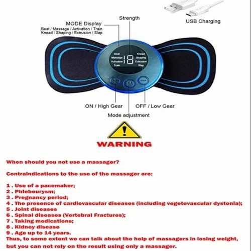 - The body massager can not only relax your muscles but also improve blood flow, relieve muscle discomfort pain and fatigue, activate muscle pressure, achieve a soothing effect, effectively exercise muscles, and target loose adipose tissue (body fat). Massager machine for pain reliefMassager pad is made of PU material, which is soft, durable, long lasting, odor-free and skin-friendly and massage machine pad can be used for a long time. Body massage machine ‘s host is also equipped with quality material.Our unique massager machine pad is self-adhesive and reusable, which is very convenient for you, once it is attached, it is not easy to fall off.