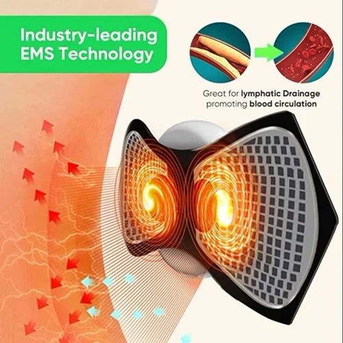 - Neck massager uses Electronic Muscle Stimulation (EMS) technology. Back massager transmits electrical impulses (electric current) to your body which relives pain and fatigue. Perfect combination of traditional & high tech massage nursing. Adopting intelligent technology, massage technology and simulation of manual massage. Body massager for pain relief