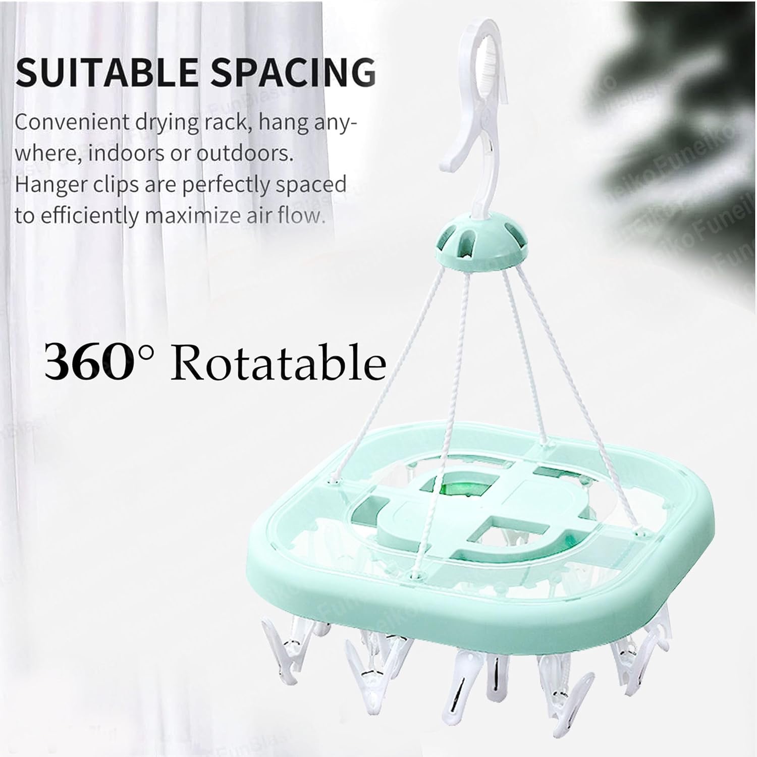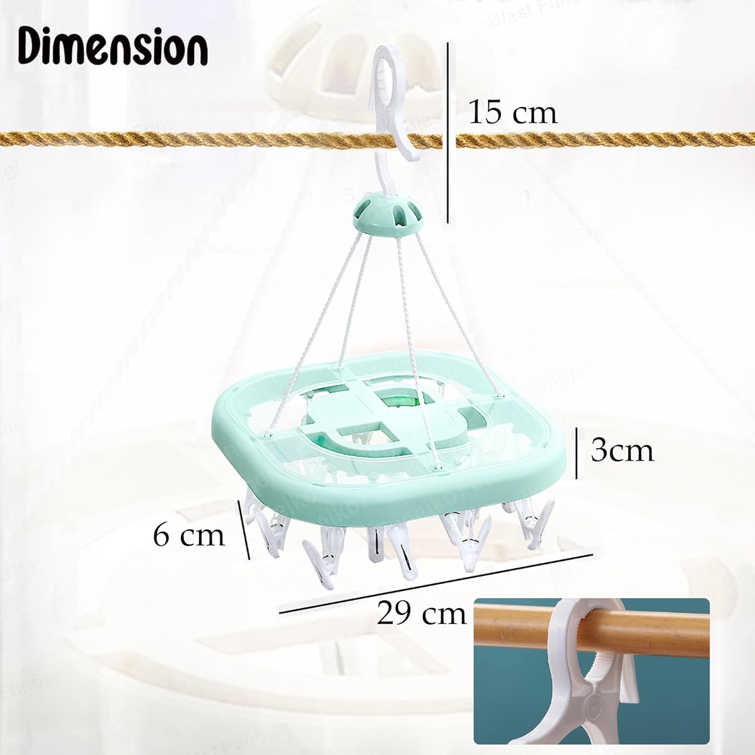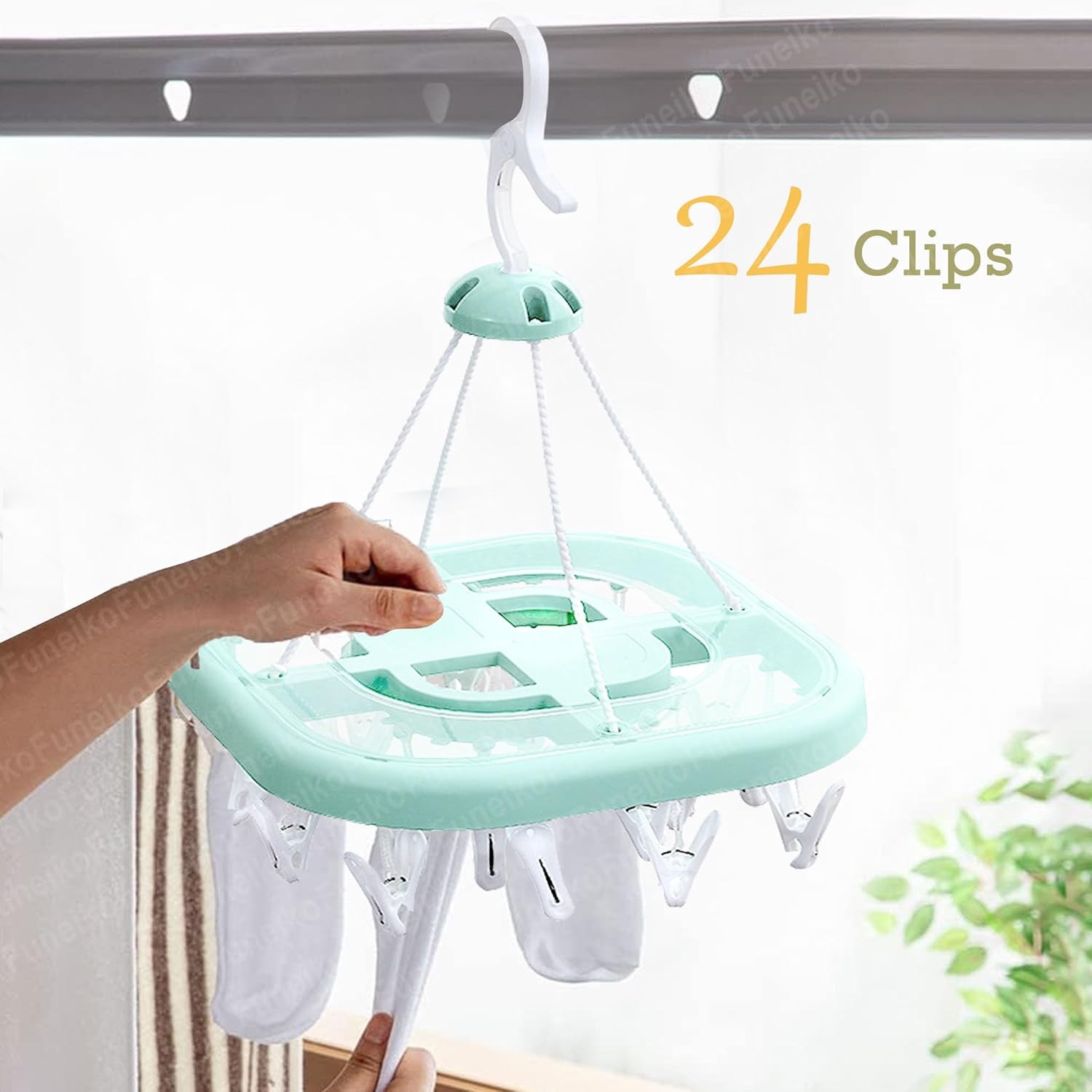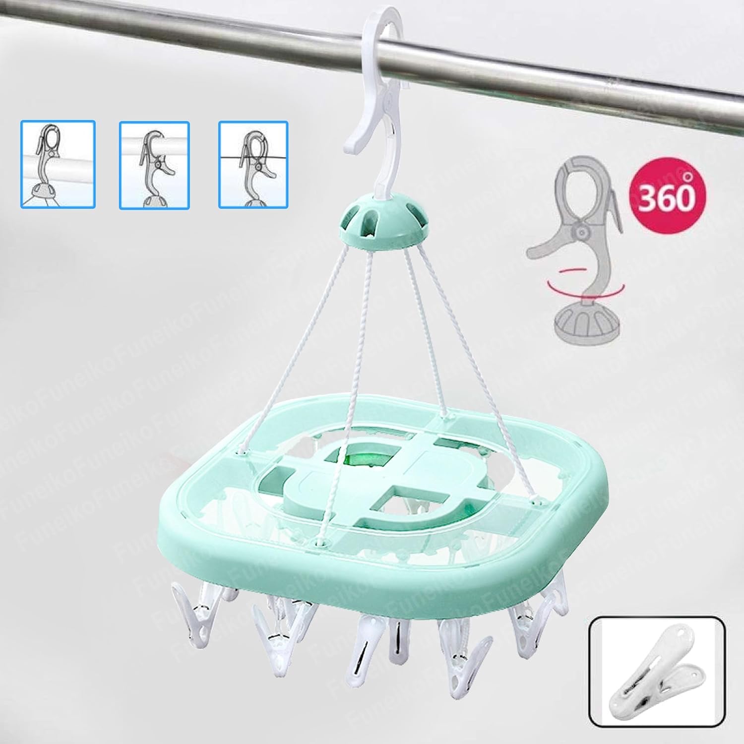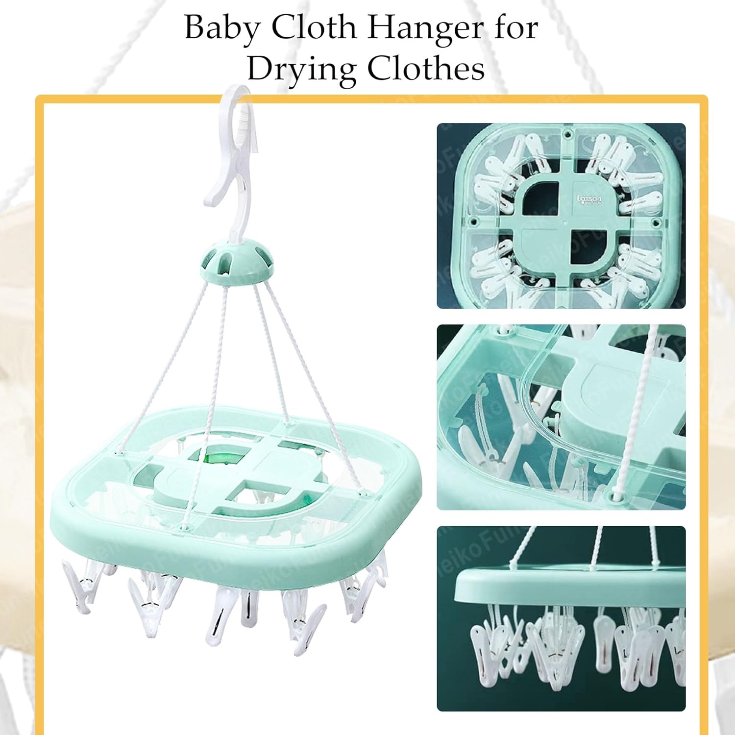 Clips Hanger for Clothes Drying, Plastic Square Shape Cloth Drying Hanging Hanger with 24 Clips/Pegs, Baby Clothes Hanger, Clips for Cloth Hanging, Cloth Clips lc