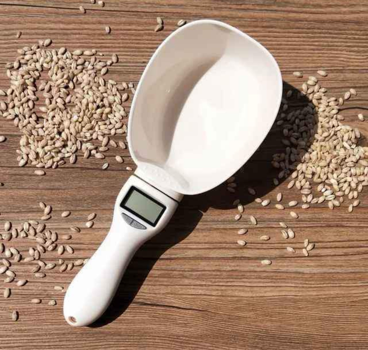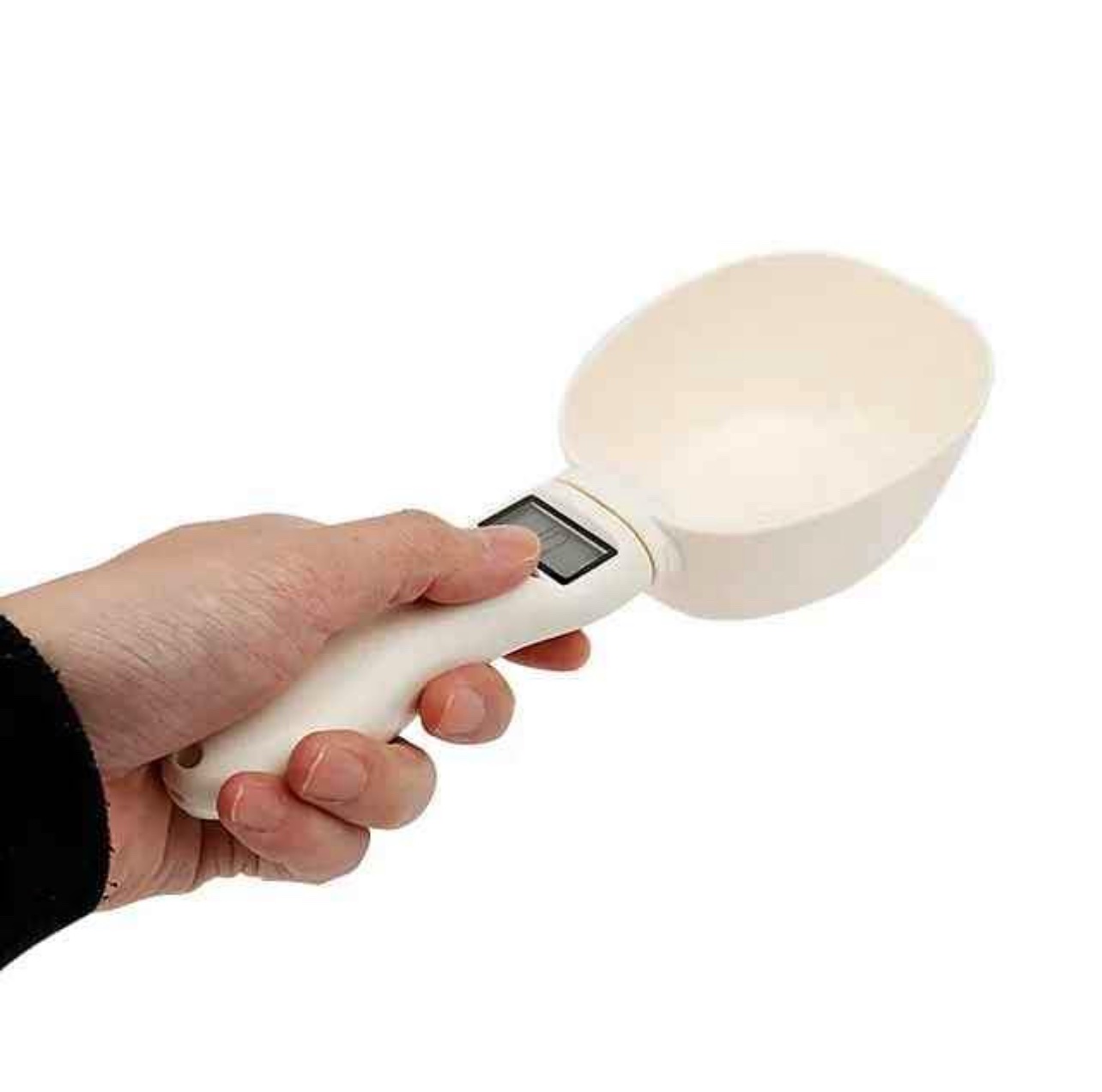 Digital spoon scale with LCD display.