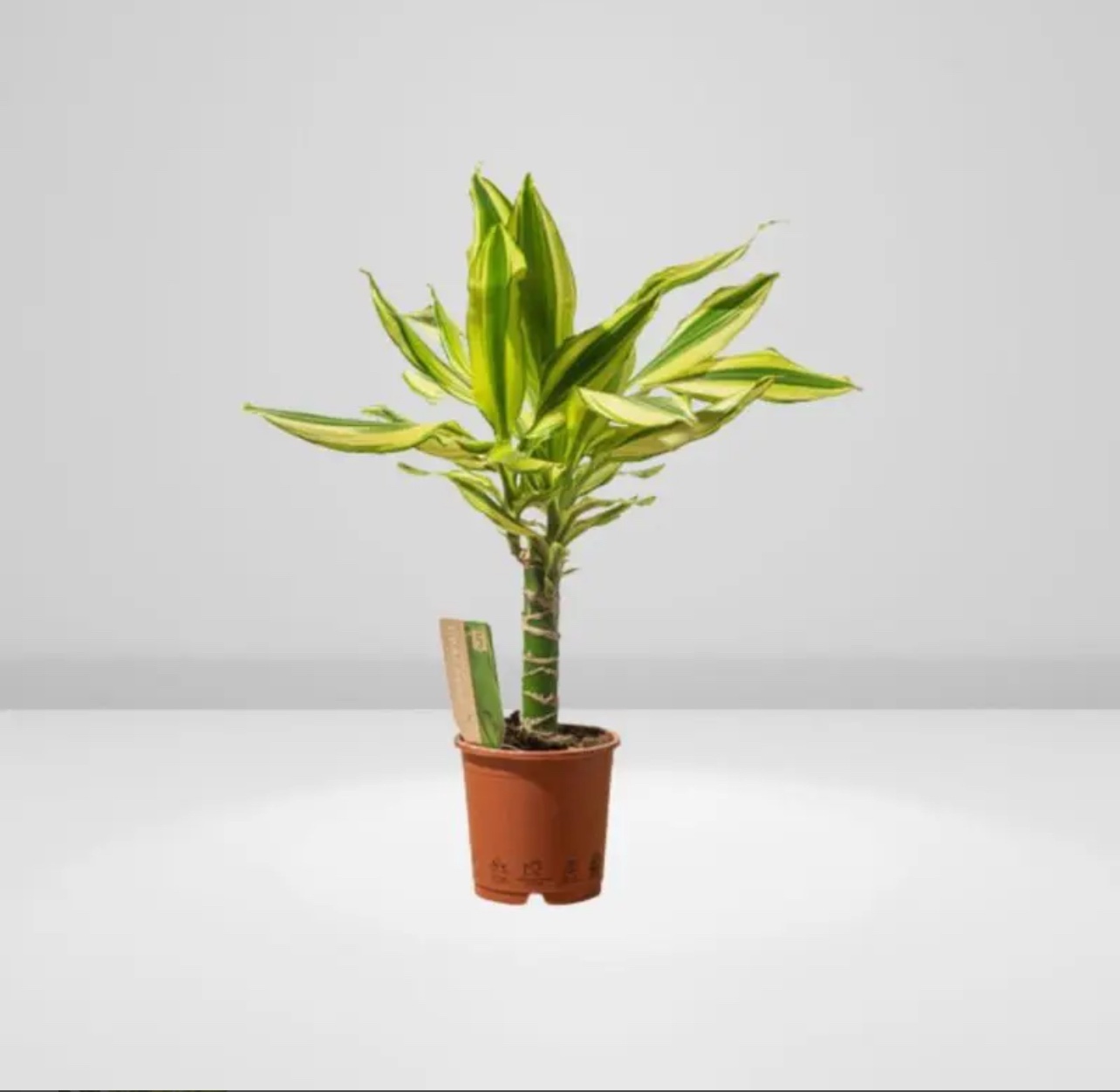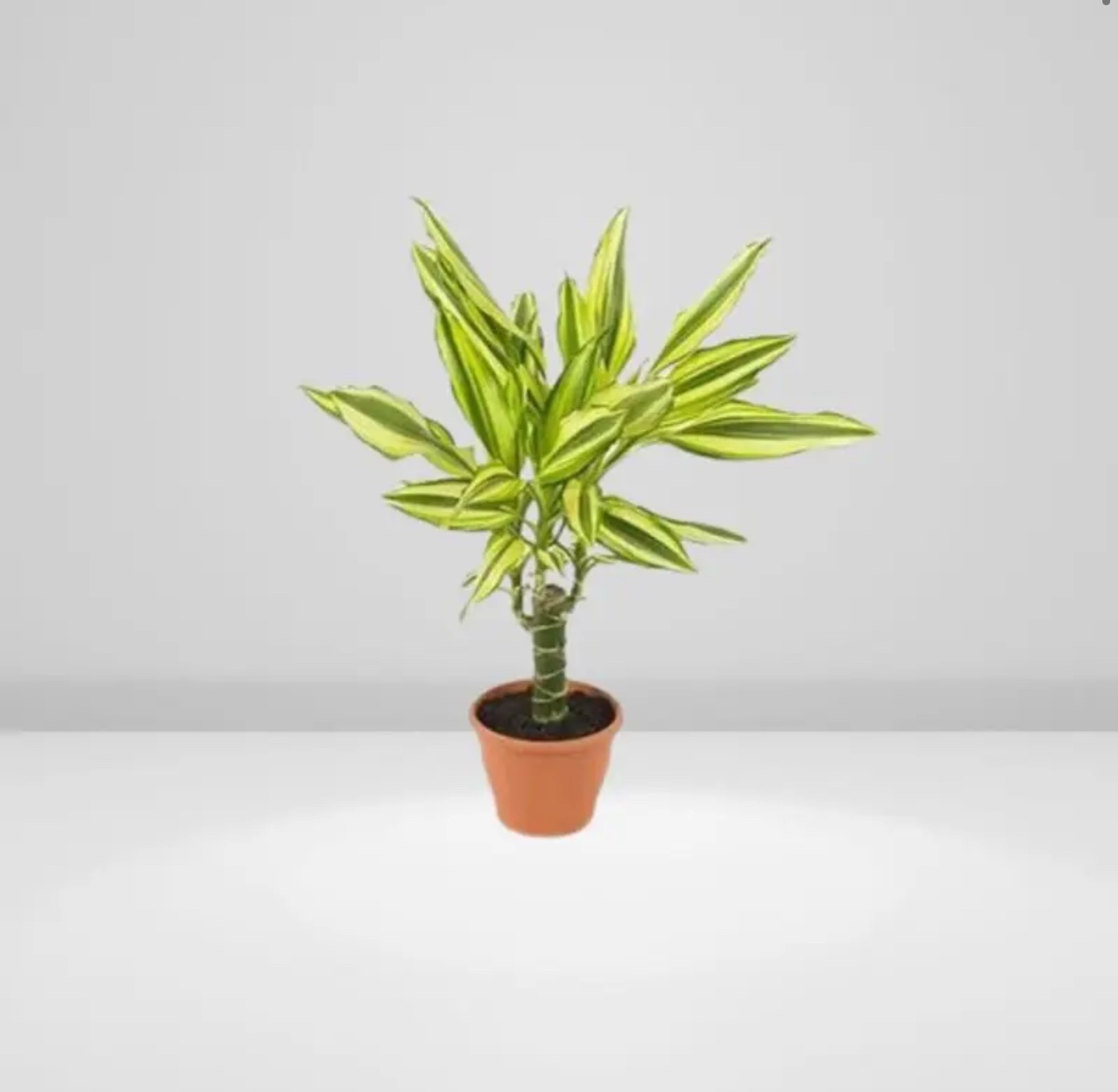 A member of the popular, low-maintenance Dracaena plant family, the Dracaena Fragrans ‘Sol’ has long, slender leaves adorned with green and yellow striations. This versatile plant will thrive best in bright light which helps it retain its color but it can tolerate lower light conditions.