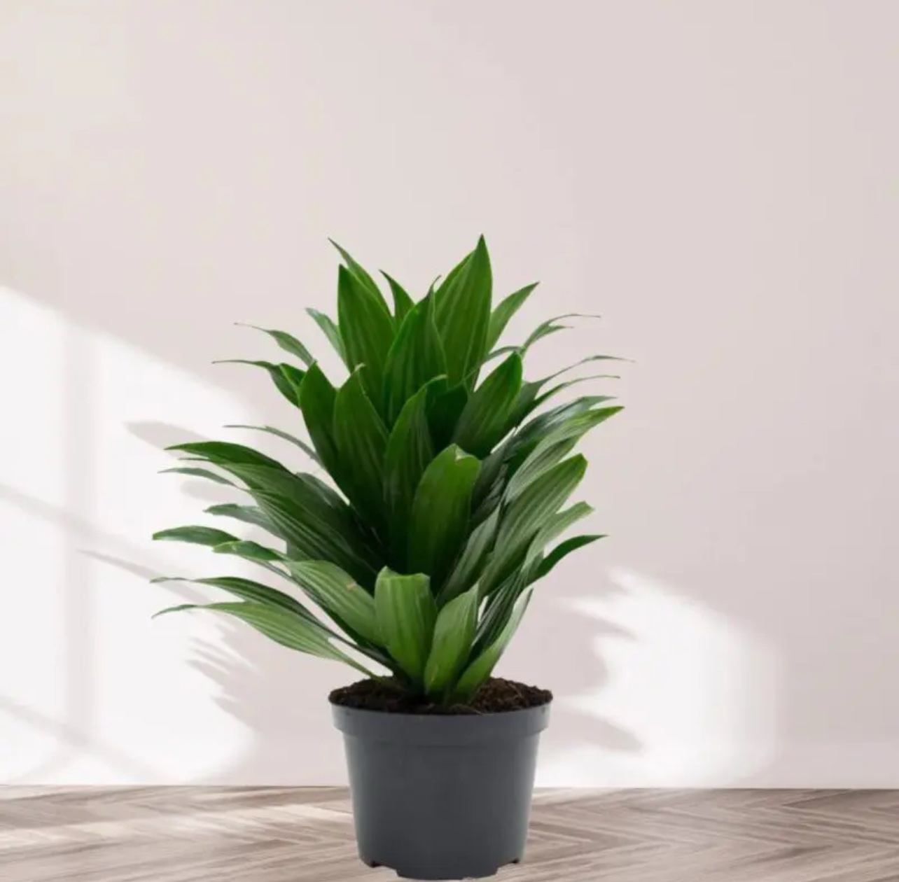 Few house plants are as easy to grow and welcome in the home as the attractive Dracaena plant. Its dramatic form makes a striking floor plant. “Janet Craig” is well worth getting to know. Although tropical by nature, it adapts beautifully to average home conditions. In fact, it does so well on its own, you don’t need to fuss over it at all. Young plants are a tuft of upright leaves. As the plant grows, it forms a cane-like stem with a cluster of leaves at its top. Its dark-green leaves are naturally shiny. Prune it back if it grows too tall. If you want, you can propagate the stem cuttings for more plants. Prefers bright, indirect light and keep evenly moist, not wet or dry. Pruning tip: Prune in spring or early summer to control its growth. You can cut off the cane at any height. It will sprout a new cluster of leaves from where it was cut. Repot in spring only when the roots have filled the pot. Young plants may need repotted every 2-3 years. Use a pot with a drainage hole to prevent overwatering.