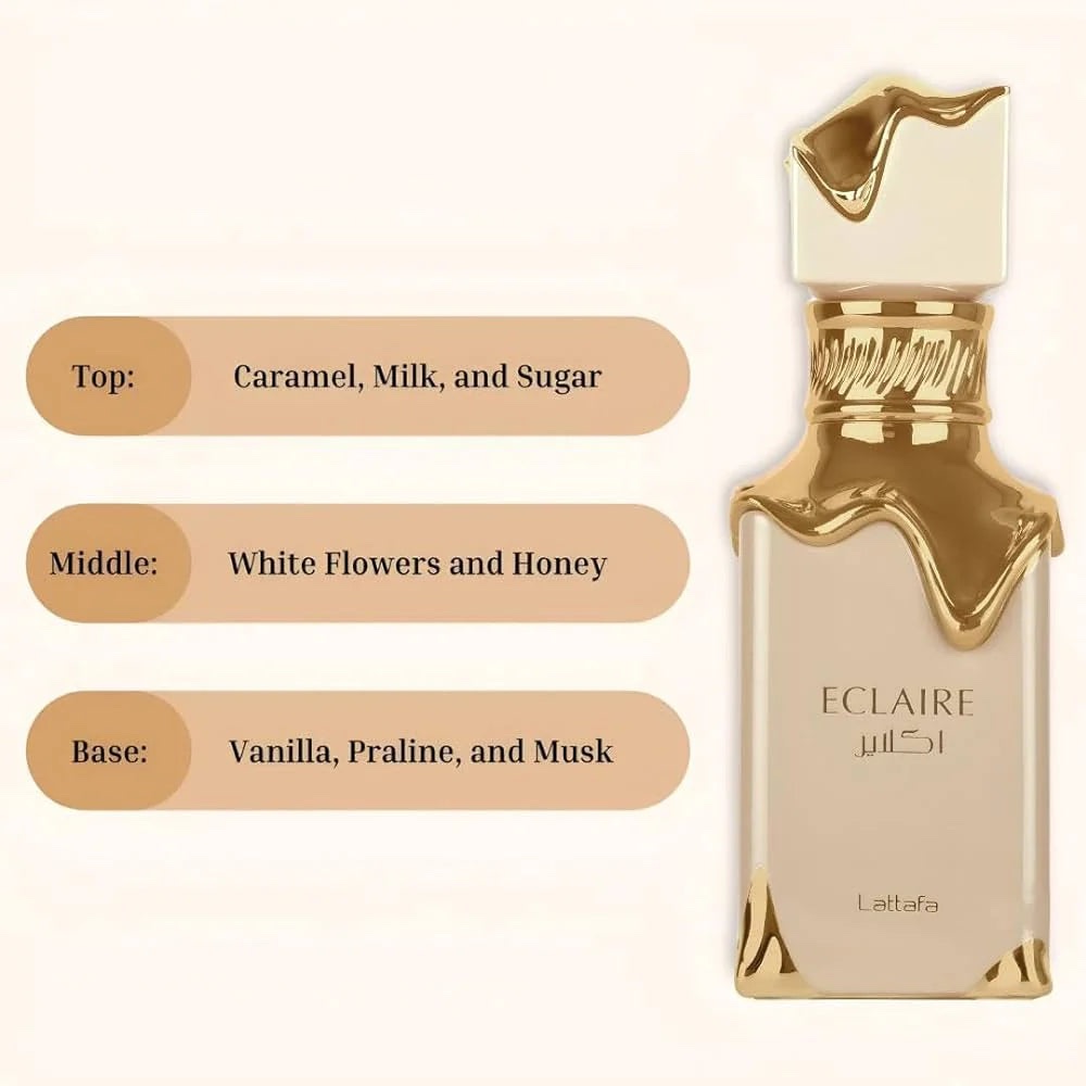 Indulge in the luxurious sweetness of Lattafa Eclaire Eau de Parfum – a fragrance that envelops you in a symphony of rich, creamy notes. The scent opens with an irresistible blend of caramel, milk, and sugar, evoking the essence of a sumptuous confection and captivating the senses with its delectable sweetness. Lattafa Eclaire is the epitome of indulgent elegance, perfect for those who crave a scent that is both sweet and sophisticated.