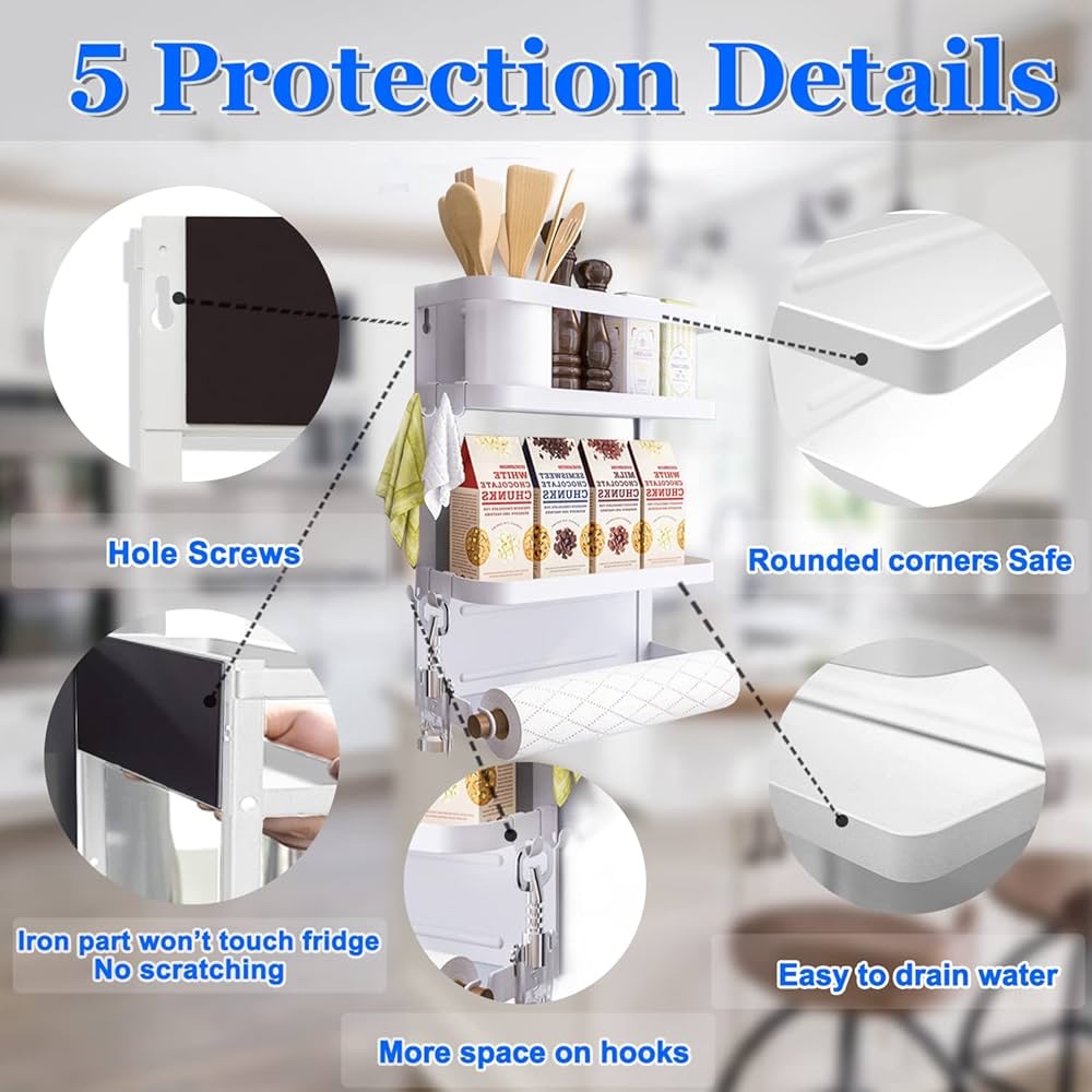 Home » Fridge Spice Rack, Magnetic Shelf with Paper Towel Holder 2 Tier Kitchen Refrigerator Storage Rack (White, Medium Dc
