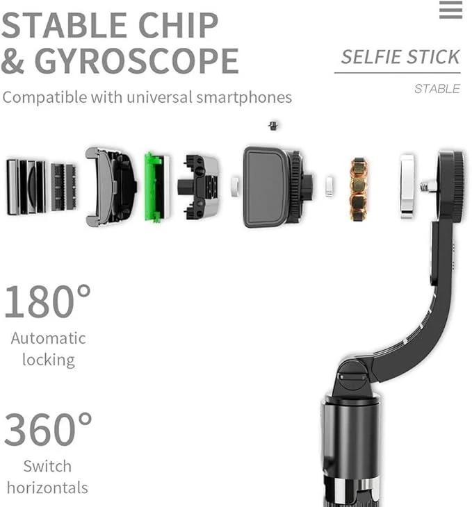 - Selfie Stick with Gimbal Stabilizer and L08 Tripod Mount, Prevent Flickering