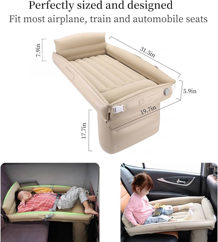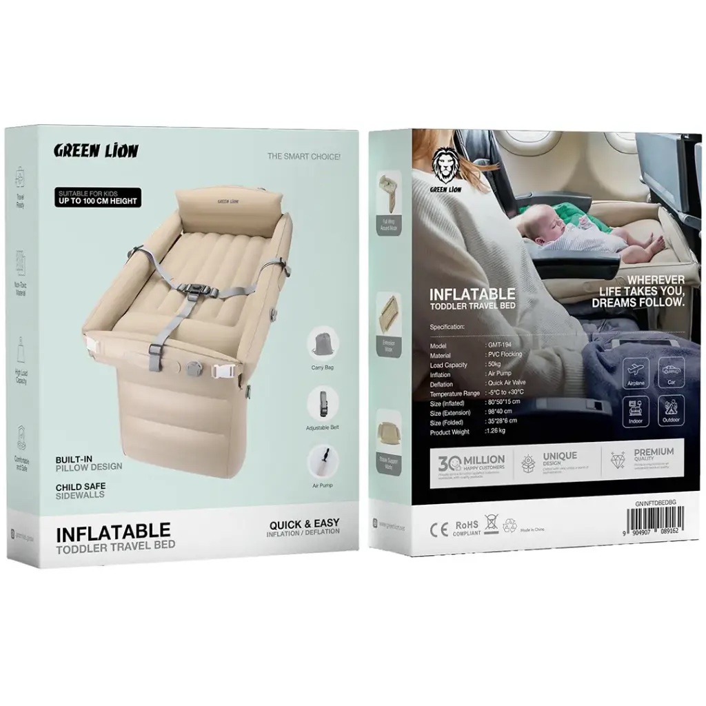 Green Lion Inflatable car 🚗 Toddler Travel Bed – Beige