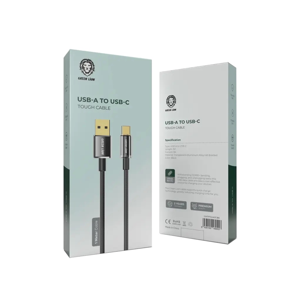 The USB-A to USB-C Tough Cable from Green Lion, with a length of 1 meter, is specially designed for fast and reliable charging and data transfer. Made with transparent aesthetics and reinforced with aluminum alloy connectors with 48 braided strands, the cable is built for ultimate durability and flexibility. With a 3A current capacity, it promises the fastest charging for USB-C devices and a rate of 480Mbps for data transfers for super-fast syncing. At 1 meter long, it is just the right length for reaching around and being convenient. The cable is highly secure, safe, and designed to suit all your charging and syncing needs with optimal performance