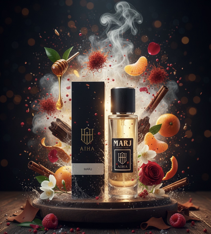 Discover an opulent oriental fragrance with our Marj inspired perfume. It opens with a rich blend of bergamot, pink pepper, tangerine, spicy nutmeg, elemi resin, honey, and oud. The luxurious heart unfolds with cashmere wood, saffron, jasmine, orange blossom, rose, cinnamon, vetiver, and patchouli. Finally, the deep base layers warm amber, ambergris, musk, leather, sandalwood, oakmoss, ambrette seed, agarwood (oud), violet, pear, and raspberry. Bold and complex, this unisex perfume is perfect for those who love warm, spicy oud balanced with sweet florals and resinous depth.