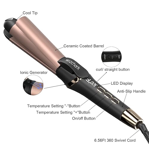 Home » Ionic Hair Straightener and Curler 2 in 1, WIZCHARK 1.25 Inch Ceramic Tourmaline Flat & Curling Iron, Auto Switch-Off, 2 Hair Clips & 1 Protective Glove Hair Straightner and Curler Set Rn