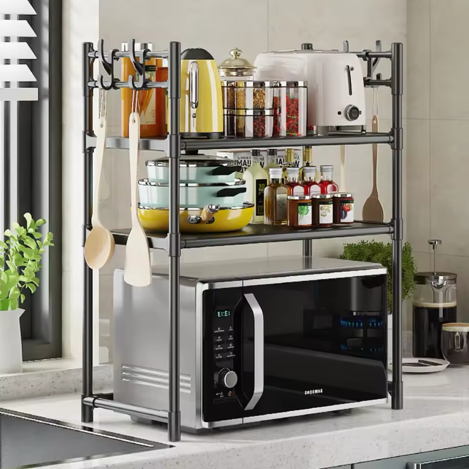 Kitchen Microwave Rack Multi-Layer Organizing Racks Simple Storage Shelf Double Layered Standing Countertop Seasoning Oven Shelf