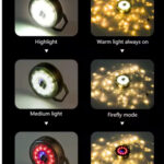Vida útil da bateria: String luz 7.5H / string luz + luz principal: 3H/luz principal: 3.5H