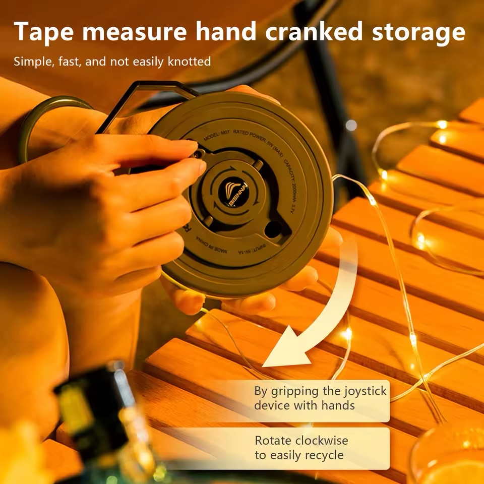 Camping String Light está equipado com uma lanterna de carregamento USB, oferecendo conveniência e flexibilidade em vários cenários ao ar livre.