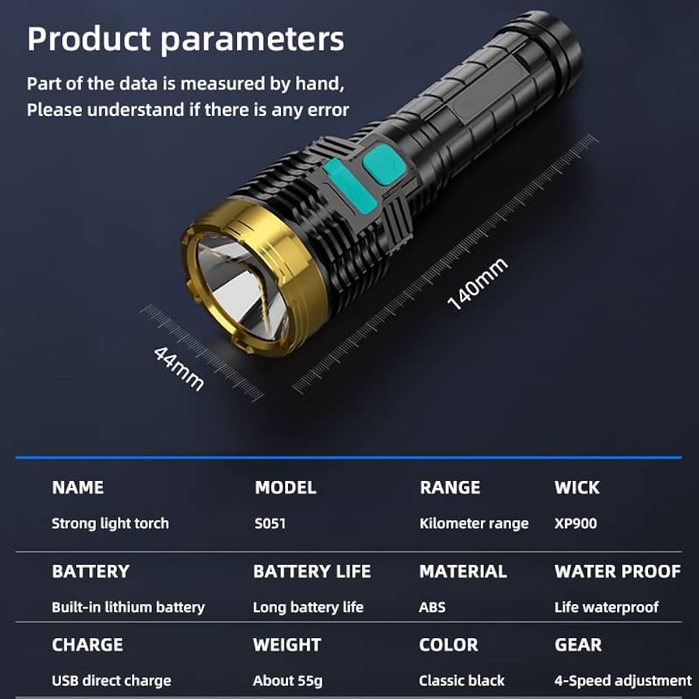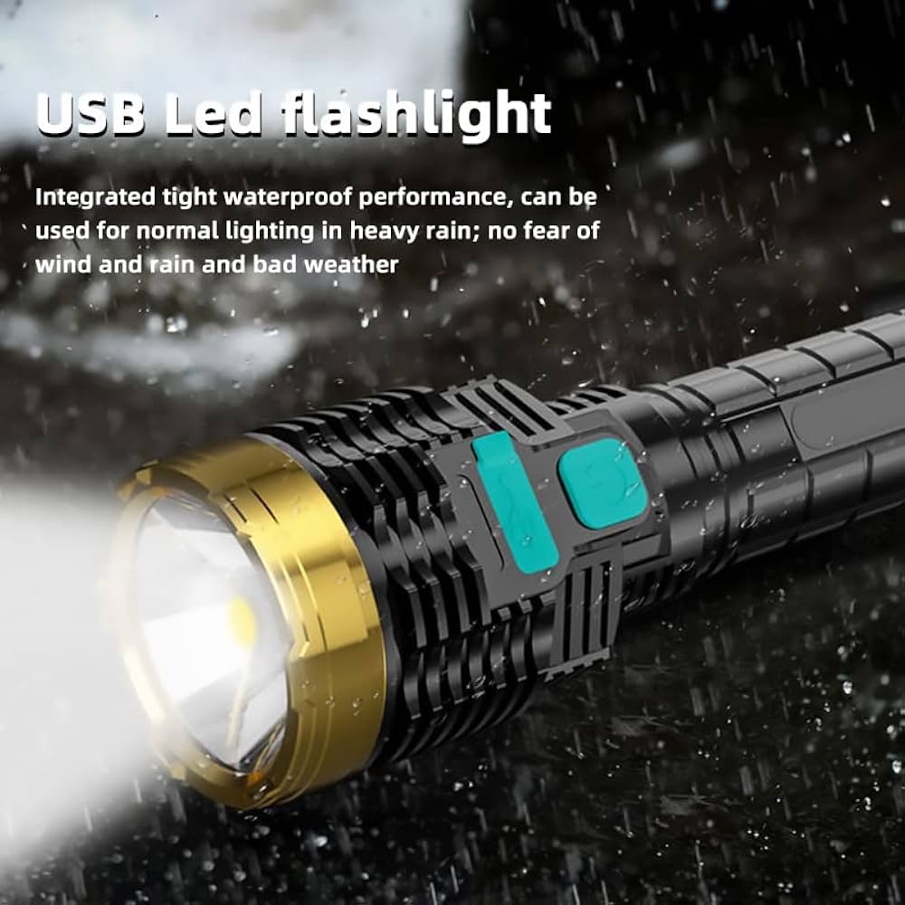 Long Range LED Rechargeable Waterproof USB Lightlight with COB Side Lamp Suitable for Camping Outdoor Portable Multifunctional Torch Super Bright ABS Strong Light Focus Led dc