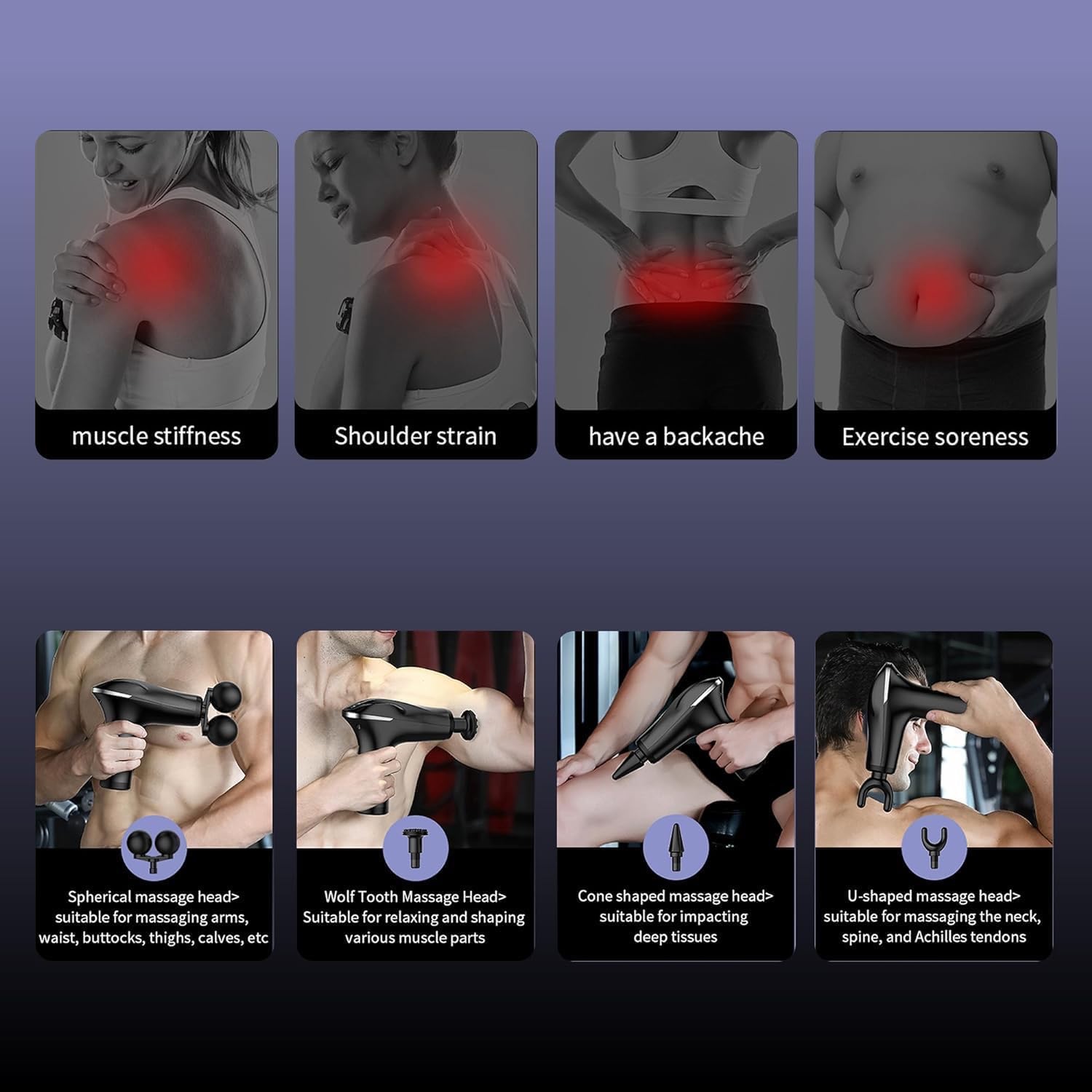 - Experience faster muscle recovery as this massage gun sends pulses to your target areas. The vibration improves blood circulation, relaxes, your muscles, and provides quick pain relief