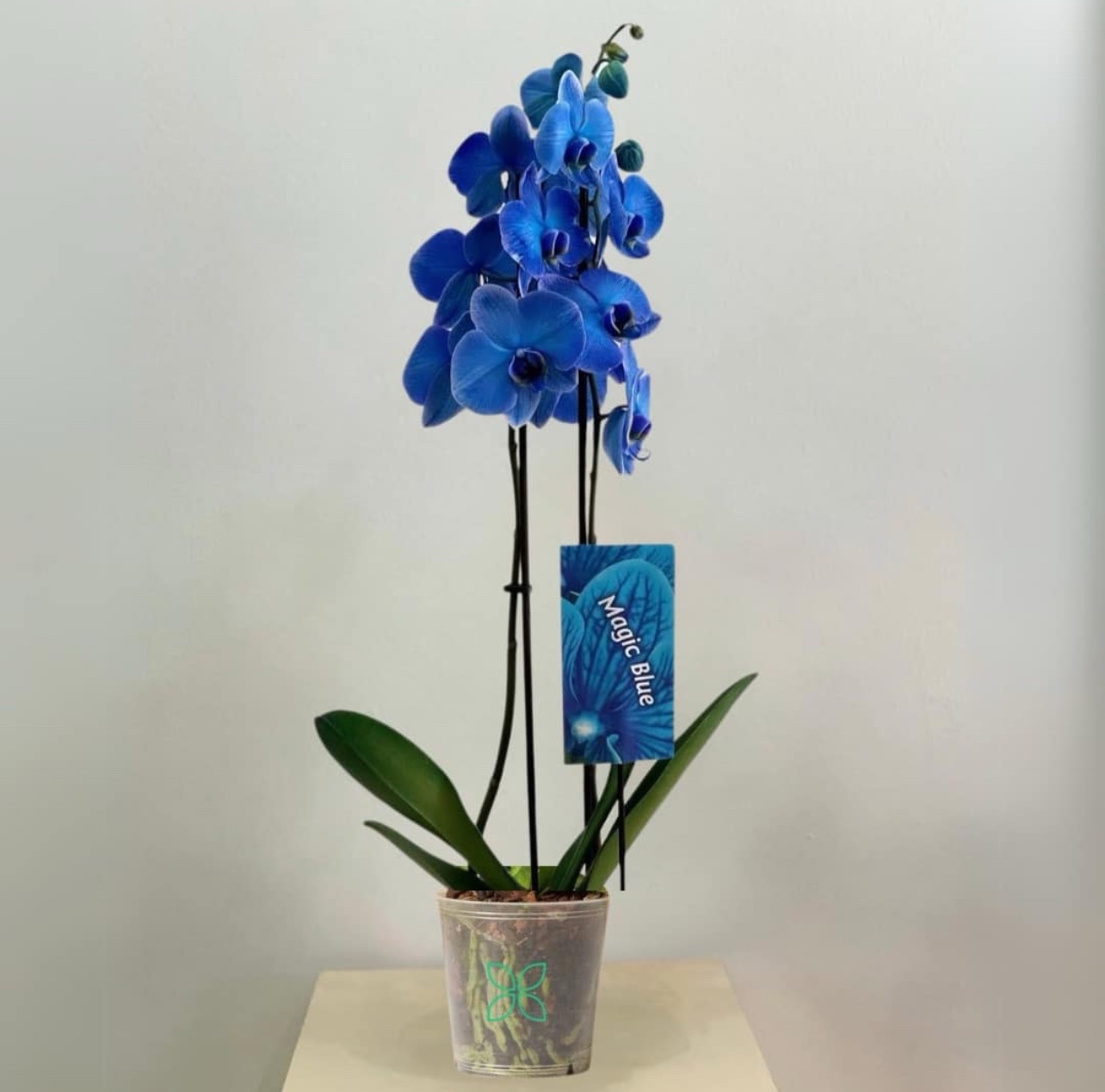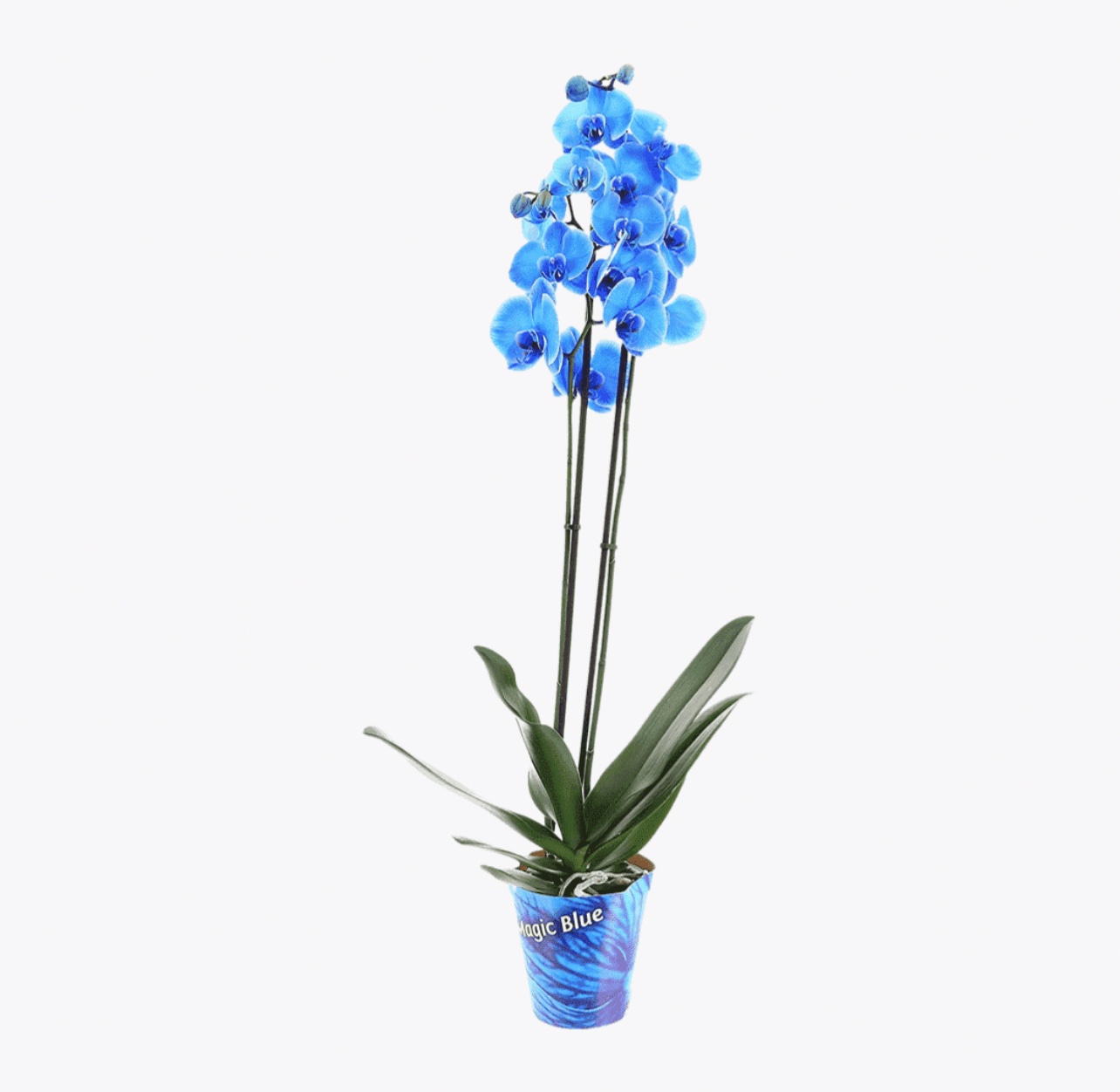 Rare and exotic, our blue Phalaenopsis orchid is simply captivating. Designed with a specially enhanced bloom color, it arrives in a brown woven basket for a unique presentation. Pair it with a delicate crystal wind chime for a gift of true serenity.