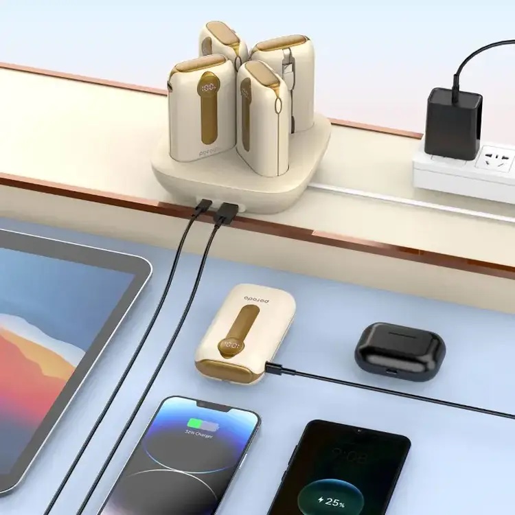 The Porodo 4 in 1 Station Power Bank is a beautiful gold gadget with a large 10,000mAh capacity that serves as a multipurpose charging option. This gadget has a compact design that makes it easy to incorporate into your daily life and was created with portability in mind. Its glossy digital display ensures you always know how much charge you have left. It gives you quick, clear feedback on the power condition. The Porodo power bank stands out for being widely compatible, which makes it a great option for a range of gadgets. Together with two 22.5W Type-C connectors and two 20W Lightning ports, it also has 20W PD technology for rapid charging. This combination satisfies all your power needs. It works at home or on the move. This product lets you effectively charge several devices at the same time.