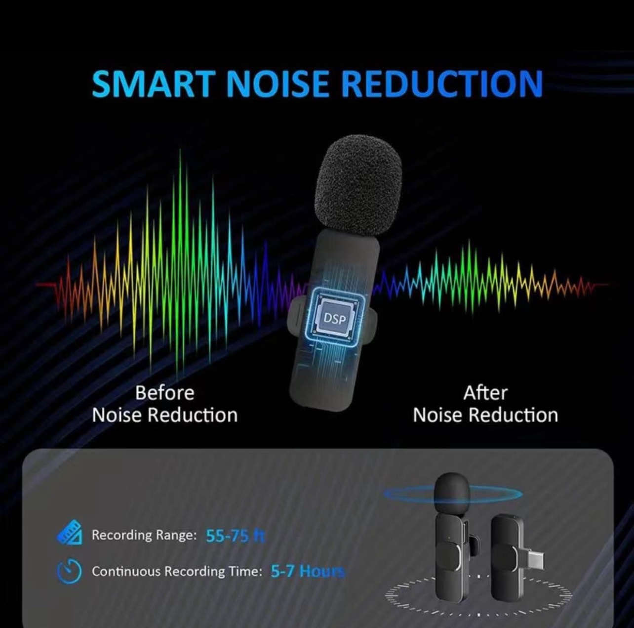 Professional Wireless Lavalier Microphone Plug & Play For Iphone Ipad Android USB-C