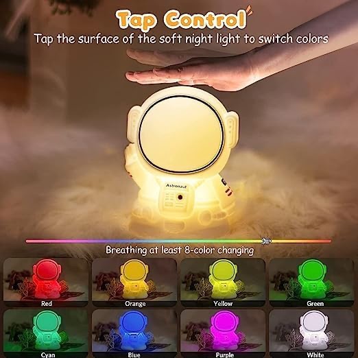 • Astronaut Light Lamp: Astronaut night light is made of BPA-free silicone, soft and washable material, 100% safe and hygienic for kids. Warm white and 7 colours breathing mode. This night lamp is a ideal gift for boys, children, teens, and Astronaut lovers.