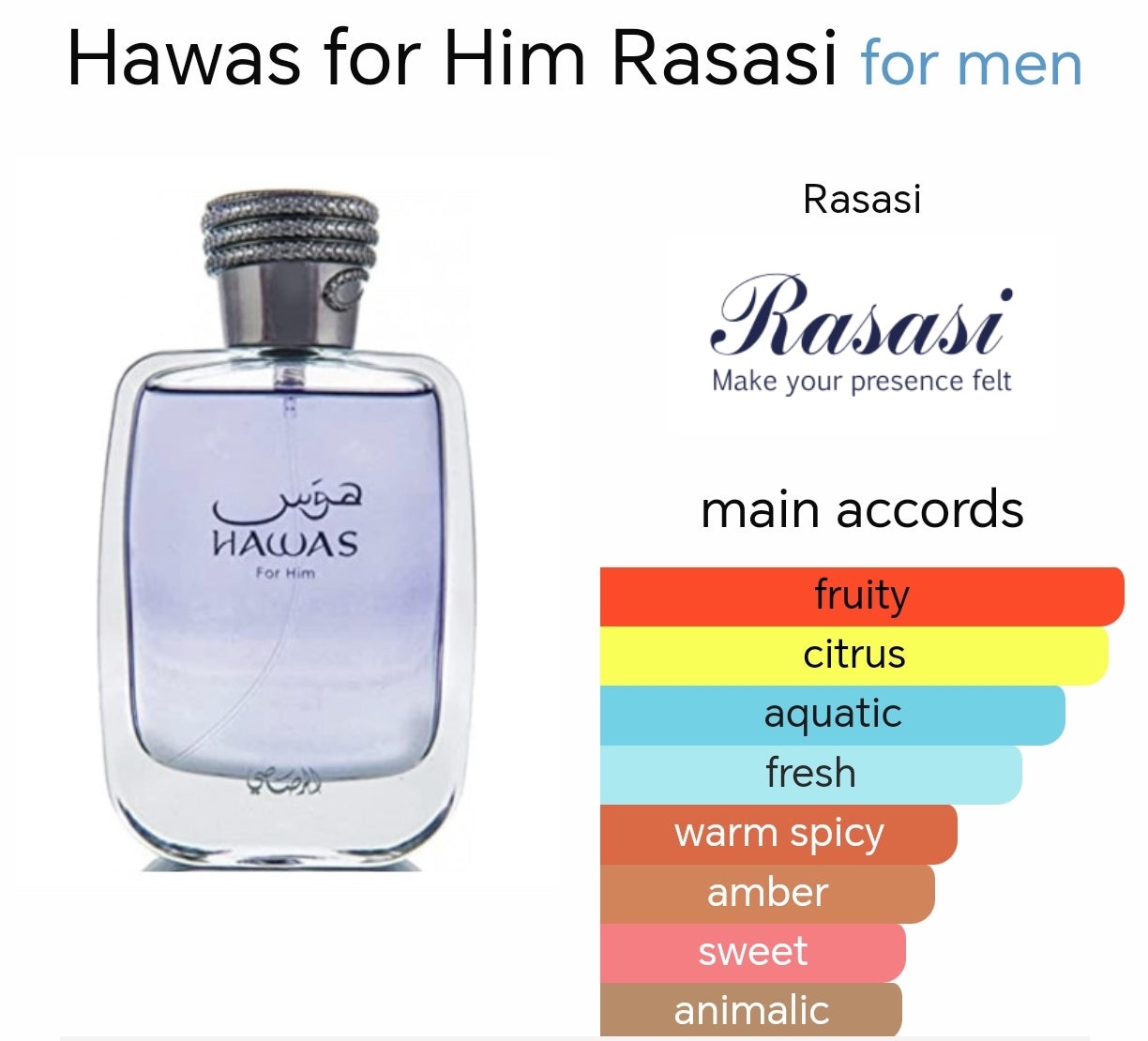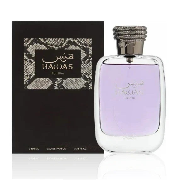 Hawas for Him blends cinnamon, bergamot, orange blossom, grey amber and sandalwood to create an aquatic scent designed to embody masculine strength and vigour. This fresh elegant woody perfume combines the premium Italian citrus and the fruity freshness of pear and pineapple. The heart of this modern fougere is based on aquatic elements combined with melon and violet. It is a mix of sandalwood, cedar wood, musk with generous ambergris. The fragrance is inflected with fresh marine aromatic notes that melt into amber woods. The fragrance captures the adventurous, exploratory and evocative spirit of the modern man. The contemporary notes of this chic fragrance come with an attitude to match. The clear grey bottle has a python wrapped around the stopper while a textured python on the pack captures the sensuality of the species with a flamboyance redolent of haute couture.