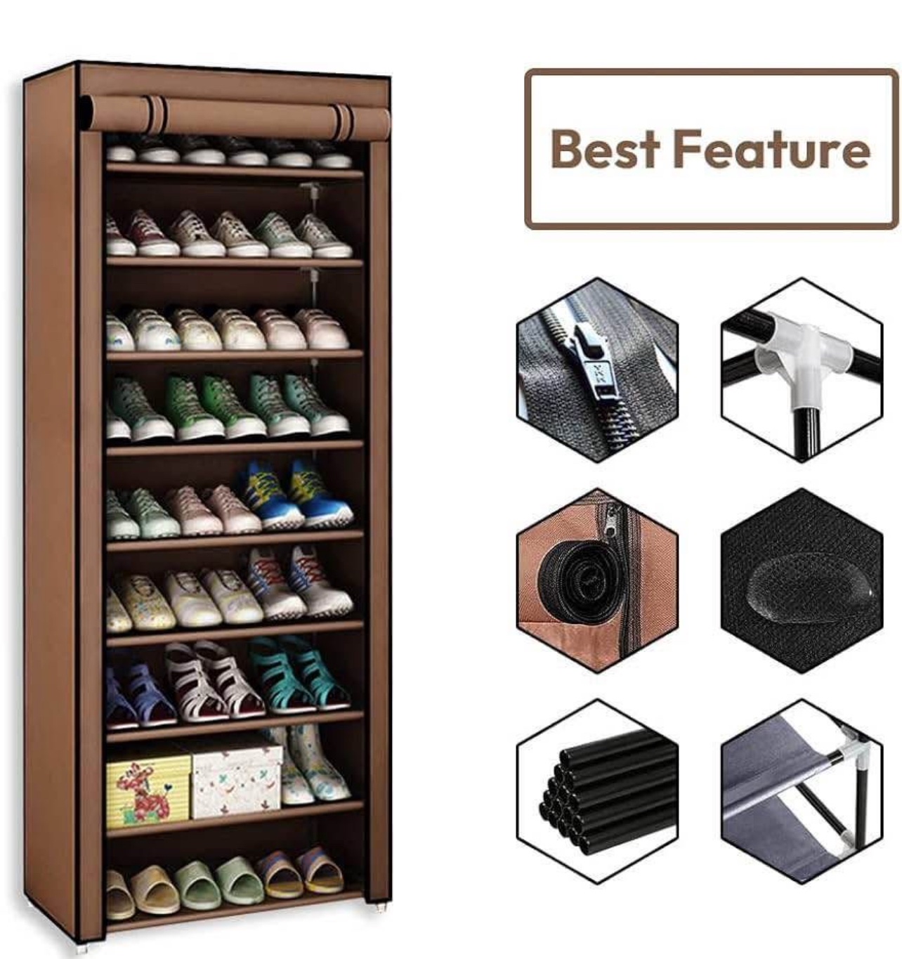 Home   »   Shoe Rack Organizer Storage with Dustproof Cover – 10-Tier Free Standing Shoe Racks Cabinet for Close