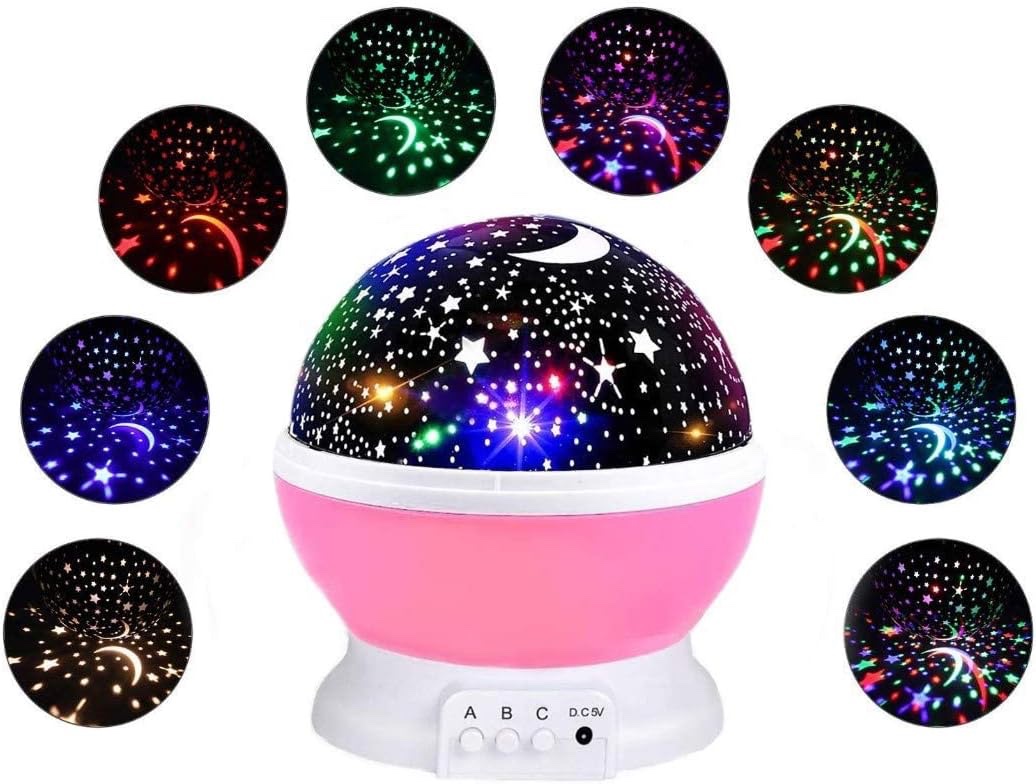 - Starry Sky Night Light Projector – The rotating projector casts the colorful stars and moon on the wall or ceiling. Transform nurseries and bedrooms into a starry sanctuary that comforts and calms boys and girls. This is great for arousing curiosity in the kids for universe and astronomical science.