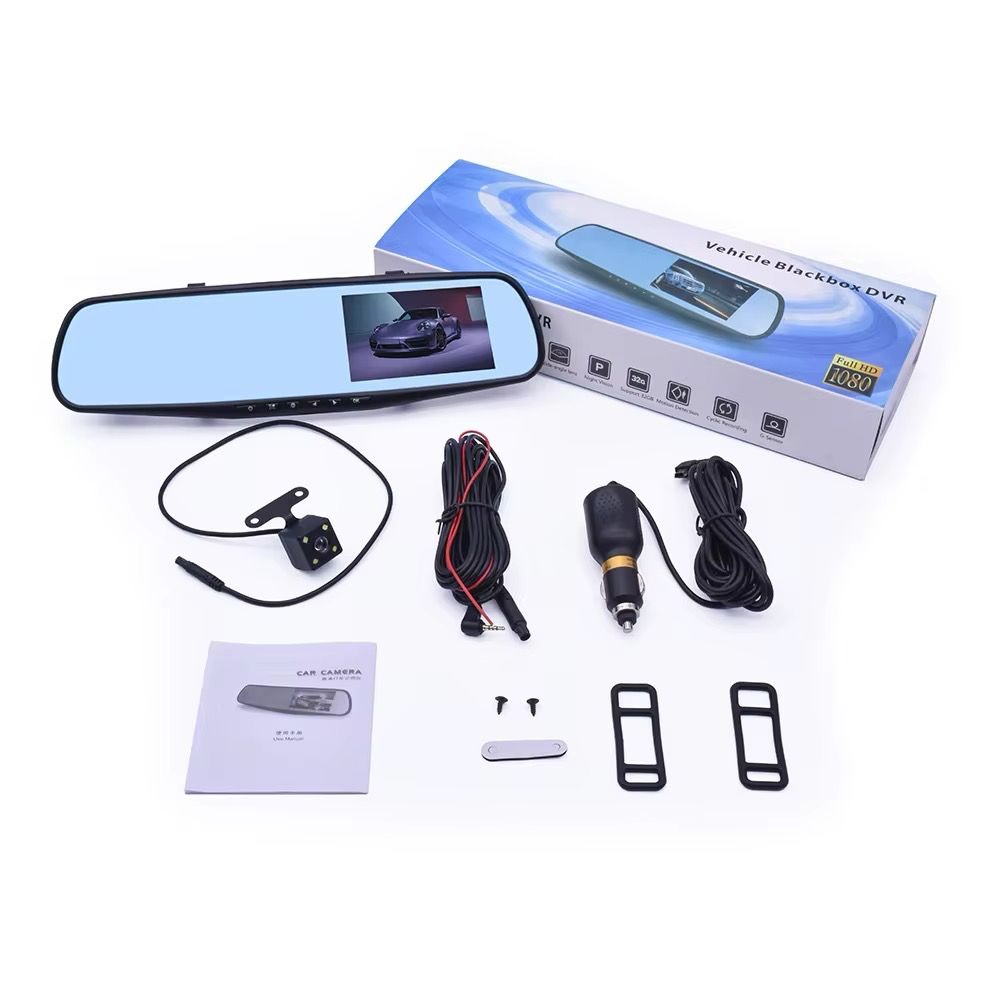 The dual car camera has a 4.5″ display mirror. The mirror display screen has 3 view modes, switch the view mode quickly from either full screen/front/rear views or pictures in picture display. And the half-screen display design will not prevent you from seeing the back view while driving. And the 4.5″ mirror dual dash cam features night vision, providing you with clear images even at night or in dark. A dual-lens dash camera simultaneously captures the road front (170 degrees) and back rear (120 degrees) in crystal detail. In addition, the front scar camera is designed with a parking monitor, which will automatically turn on and record when parking. Variable sensitivity gravity-sensor auto detects a sudden collision and emergency, which will lock the video to “SOS File” to prevent that video from overwriting. This seamless loop recording overwrites the oldest footage with the newest while the card is filled (Max support 32GB). Also, the parking guideline will help you park safer and faster