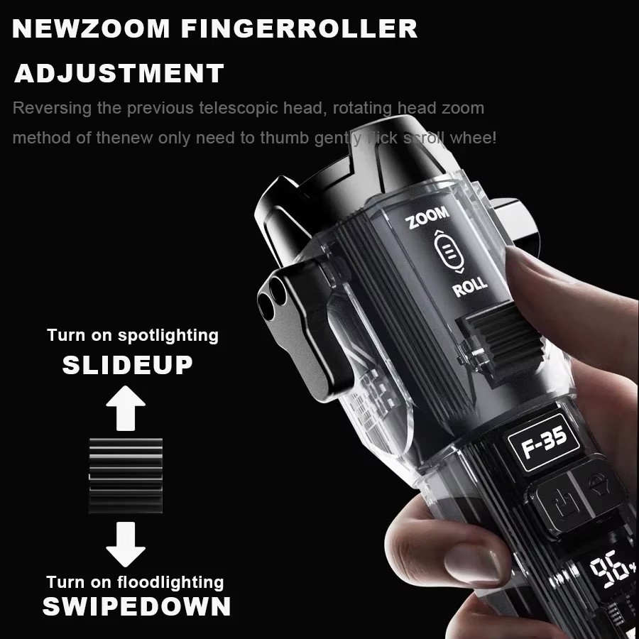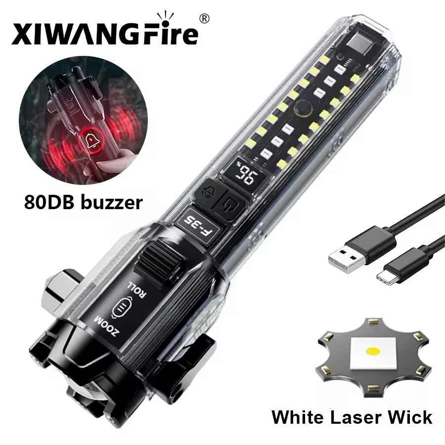 XIWANGFIRE F35 LED Flashlight Dual Light Source Slide Zoom Tactical Torch Built-in 1800mAh Battery Rechargeable Emergency Torch