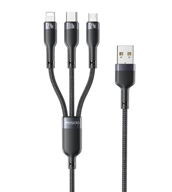 Yesido 3 In 1 USB Cable For Data Cable Charging Cable Multiple Devices 1m CA91