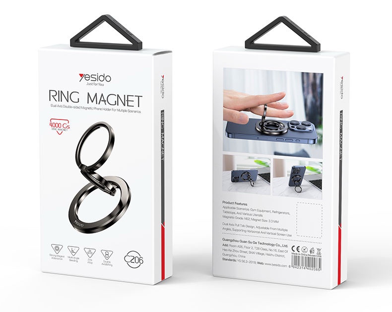 Home » Yesido C206 Zinc Alloy 180 Degree Dlip and Fold Built-in N52 Magnets Double Ring Metal Folding Ring Phone Holder